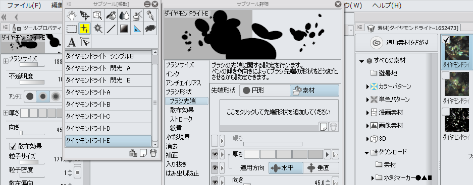 表示して頂き、左側で[ブラシ先端]を選択している状態の画面の