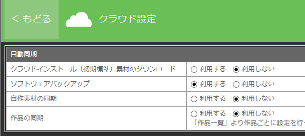 表示されるクラウド設定の内容が確認できるようスクリーンショット