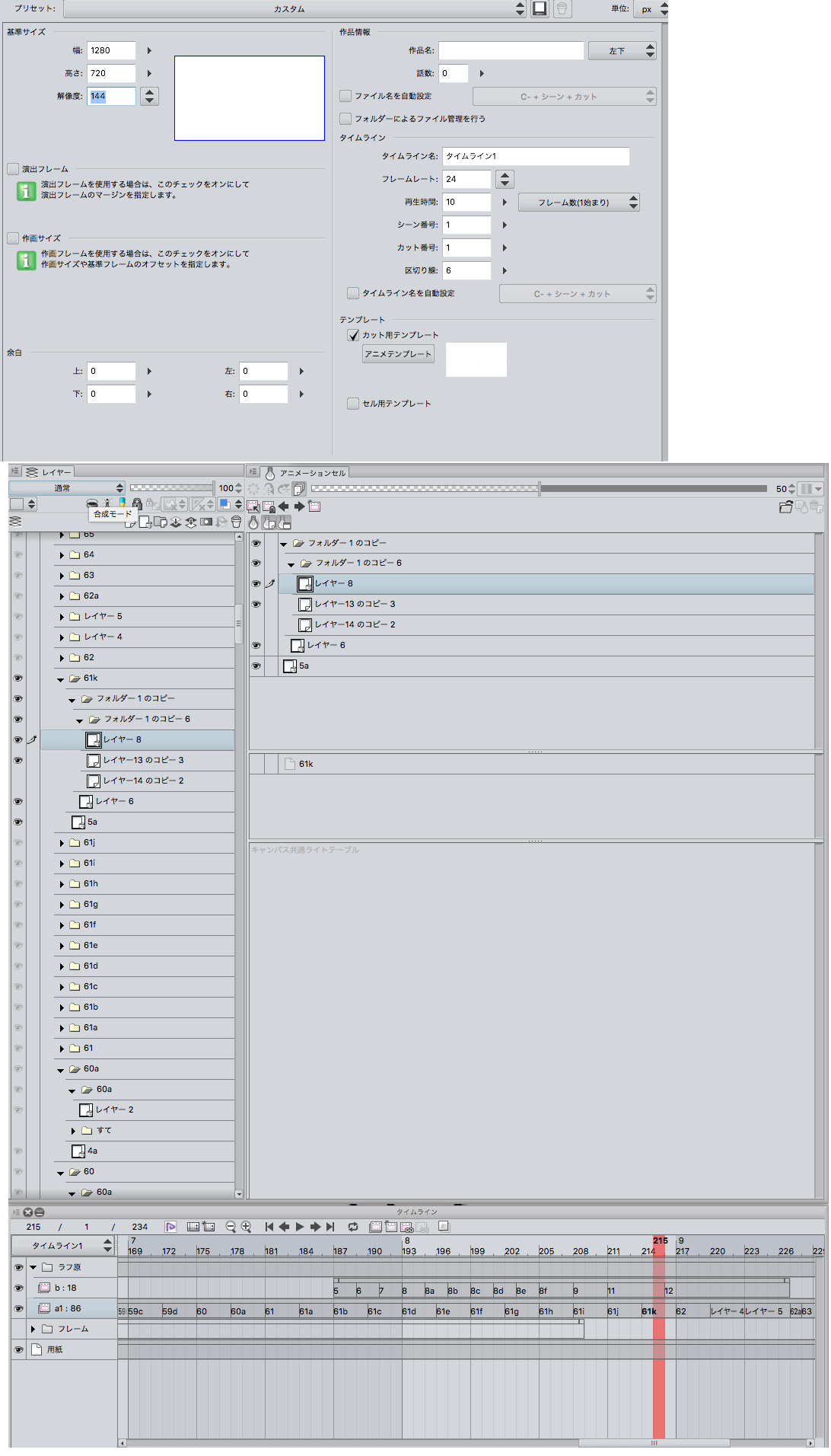 ・「タイムライン」パレットの構成と「レイヤー」パレットの構成が確認出来る