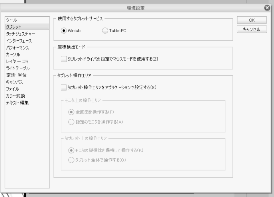 あわせて、「ファイル」メニューから「環境設定」を開き、「タブレット」項目を
