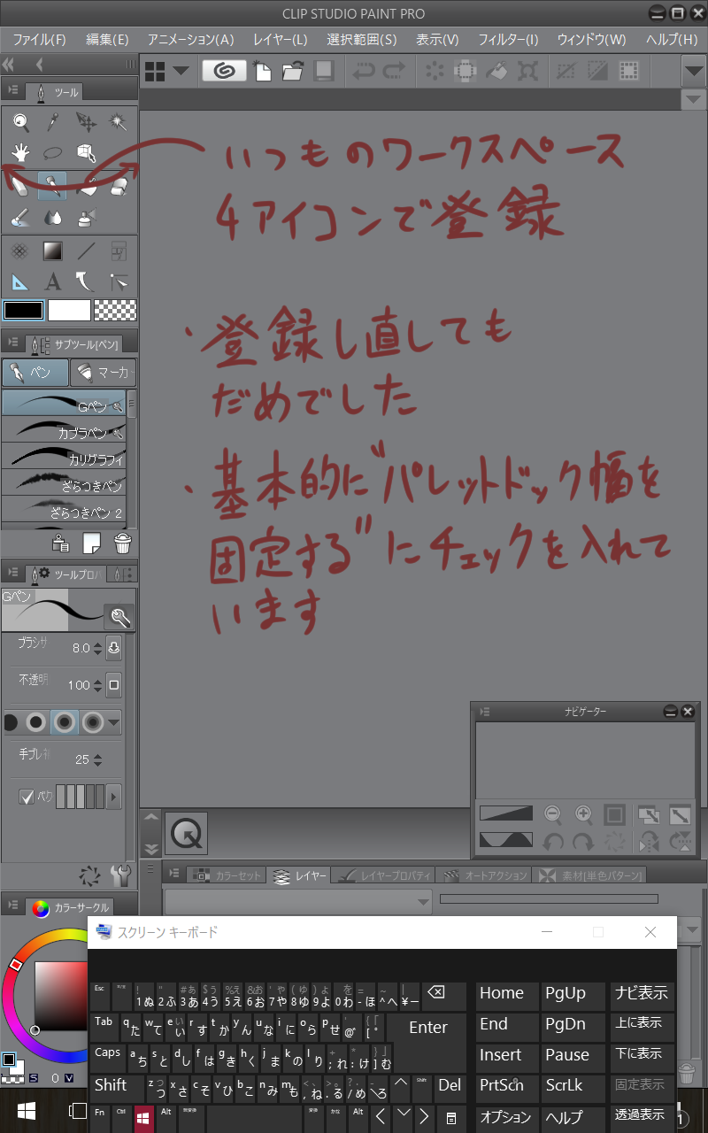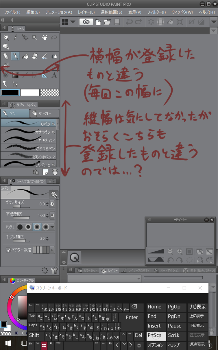 ・起動時のCLIP STUDIO PAINTの画面全体と、起動後手動で直された後の