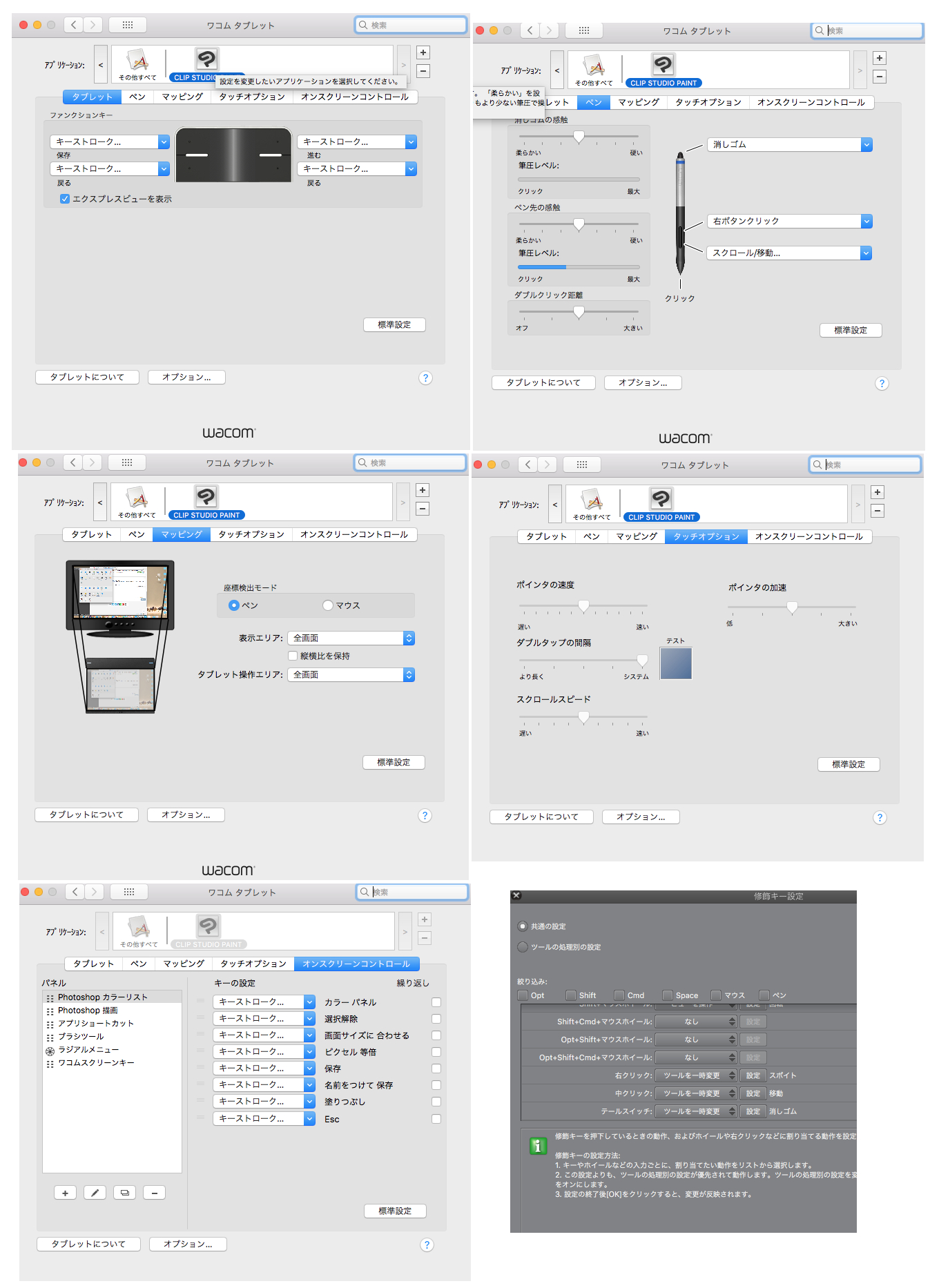 12月中旬頃から ペンや消しゴムで線を引くとその次の動作で移動ツールに変わってしまいます もう一度ブラシを選ぶと線はひけるようになりますが、ペンを離すとまたカーソルが矢印マークに代わり線を引こうとしてもまた移動するようになります。 運が良ければOSの再起動で治りますがまたすぐに再発します。 記憶は曖昧ですが12月に入ってからクリップスタジオのアップデートのあとMacのOSを更新したと思います タッチ機能について OFFにしています また他のボタンには一切触らずにこのような現象が起きます その他解決にならなかったもの CLIP STUDIO PAINTの再起動 装飾キー設定の初期化 CLIP STUDIO PAINTの環境設定→ツールの一時切り替え→ショートカットキーを長押ししてツールを一時的に切り替えるのチェックマークを外す Magic Mouseの電源を切る(Bluetoothを切る) Magic Keyboardの電源を切る(Bluetoothを切る) 他のアプリケーションを終了させる ペンタブレットのUSBを抜き差しする ペンタブレットのUSBの差し込み口を変える ペン先の交換 ペンタブレットの設定の初期化 ワコムタブレットの設定は添付した画像通りです CLIP STUDIO PAINTの装飾キーは初期化しても治らなかったのでペンの設定だけ元に戻しました macOS High Sierra バージョン 10.13.2 CLIP STUDIO PAINT EZ Version 1.7.2 wacom INTUOS pen&touch medium CHT-680 タブレットドライバのバージョン 6.3.23-4 ![]() ------------------------------------------------------------ ■バージョン: ※Windows/MacOSXは、右上の[?]アイコンをクリック後に[バージョン情報]で確認できます。 ※iPadは、PAINTの[CLIP STUDIO PAINT]アイコンをクリック後に[バージョン情報]で確認できます。 ■OS Windows XP( ) Windows Vista( ) Windows 7 ( ) Windows 8( ) Windows 8.1( ) Windows 10( ) MacOS X 10.5( ) MacOS X 10.6( ) MacOS X 10.7( ) MacOS X 10.8( ) MacOS X 10.9( ) MacOS X 10.10( ) MacOS X 10.11( ) mac OS 10.12( ) mac OS 10.13( ◯ ) iOS 11( ) その他( ) ------------------------------------------------------------ |