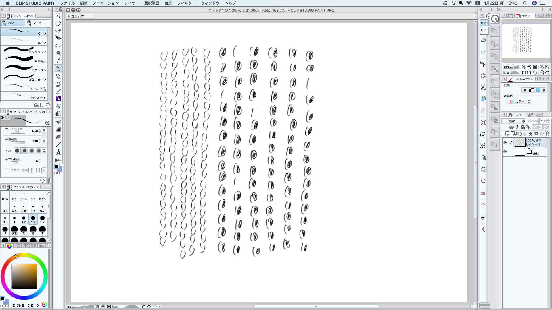 ( )を連続して描いた状態で( )になっていない部分がペン が反応せず描画できていない状態です。