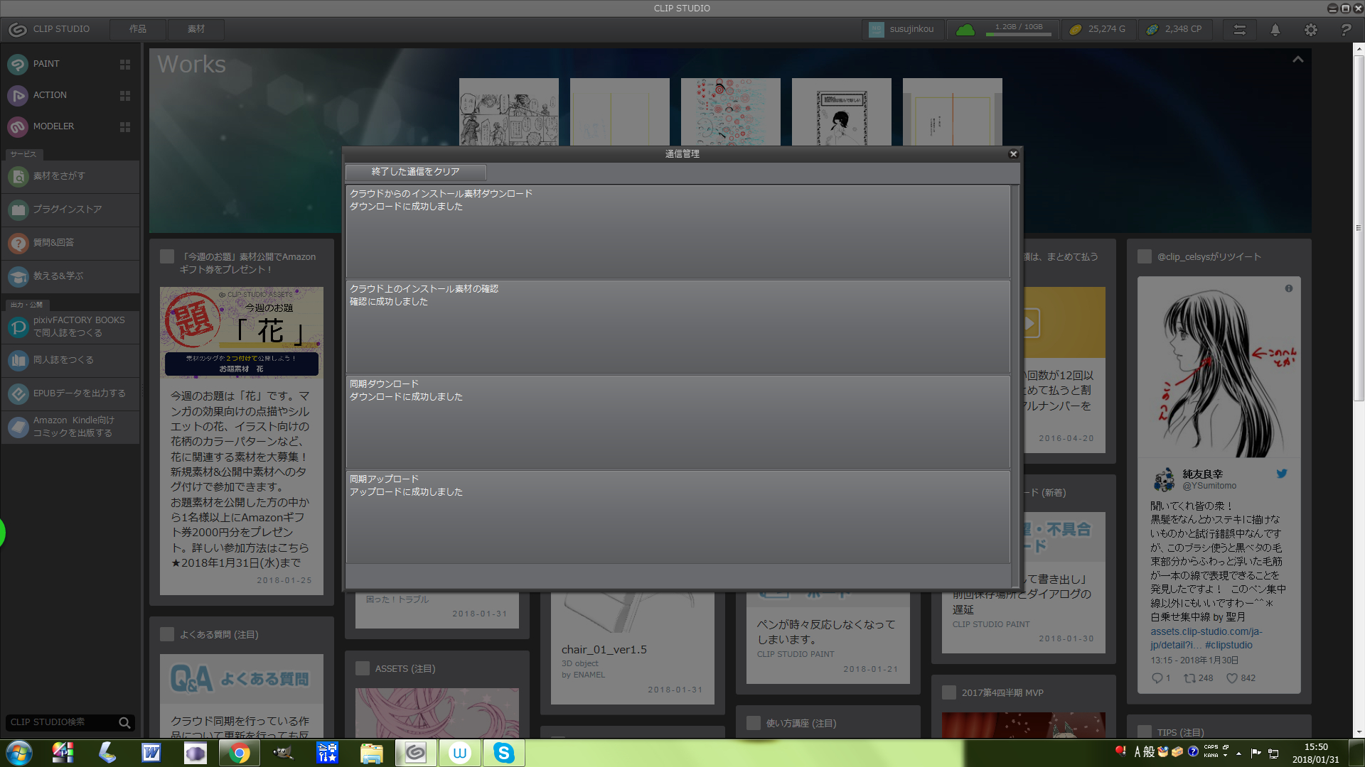 ・通信が行われているとの事ですが、CLIP STUDIOの画面右上の左右の矢印の