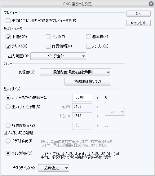 [PNGの書き出し設定]ウィンドウは保存場所の指定するウィンドウ