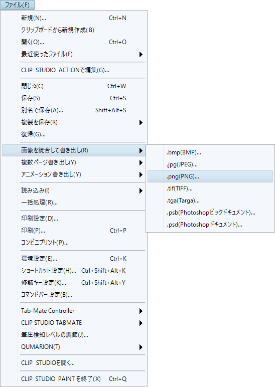 頂いた上で、[ファイル]メニューの[画像を統合して書き出し]を