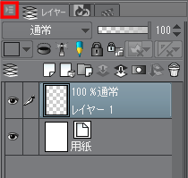 ・[レイヤー]パレットにて、以下の画像の赤枠をクリックしていただき、[サムネイルの