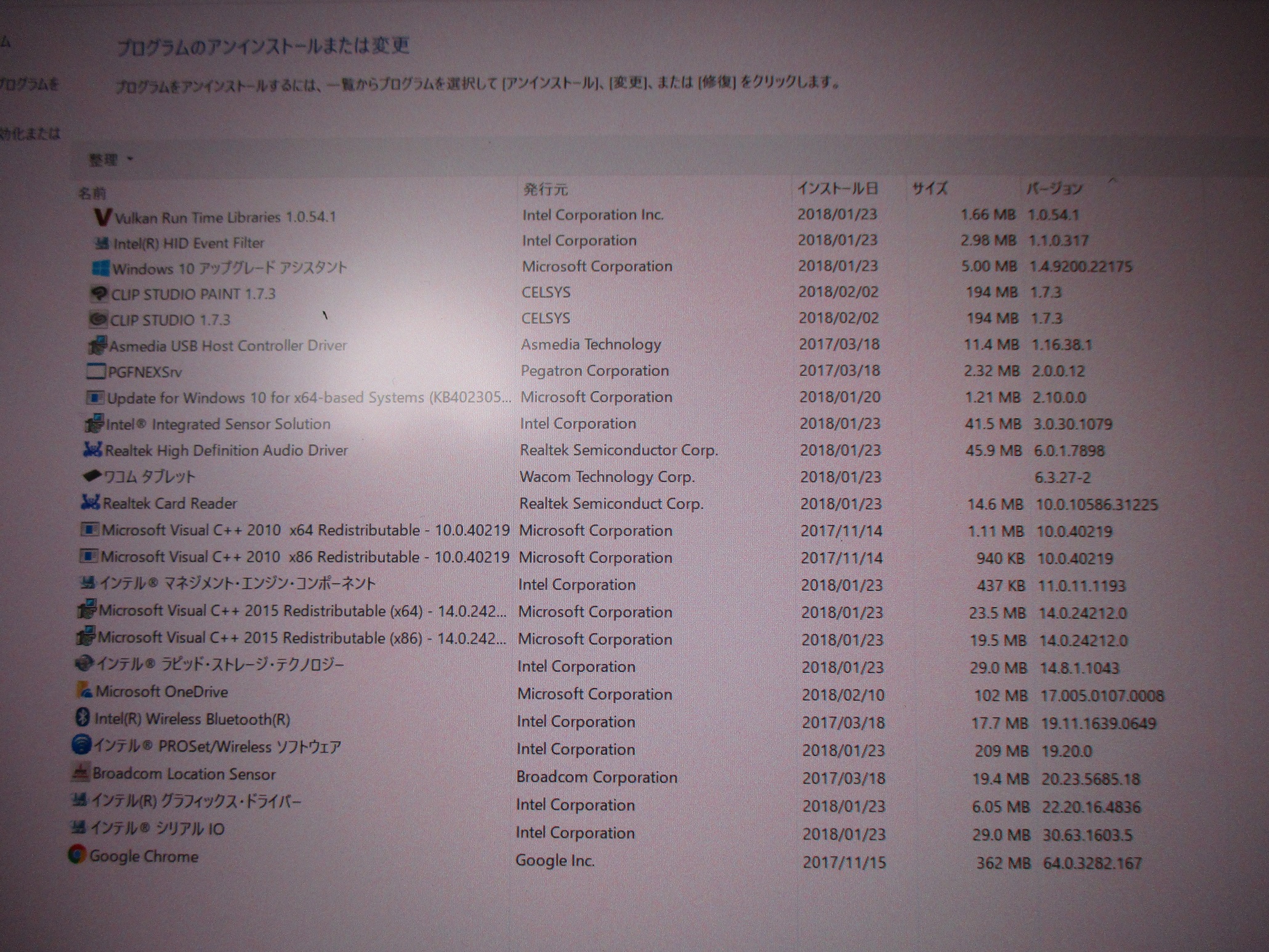 スクリーンショットを撮影いただき、CLIP STUDIO PAINTのみ