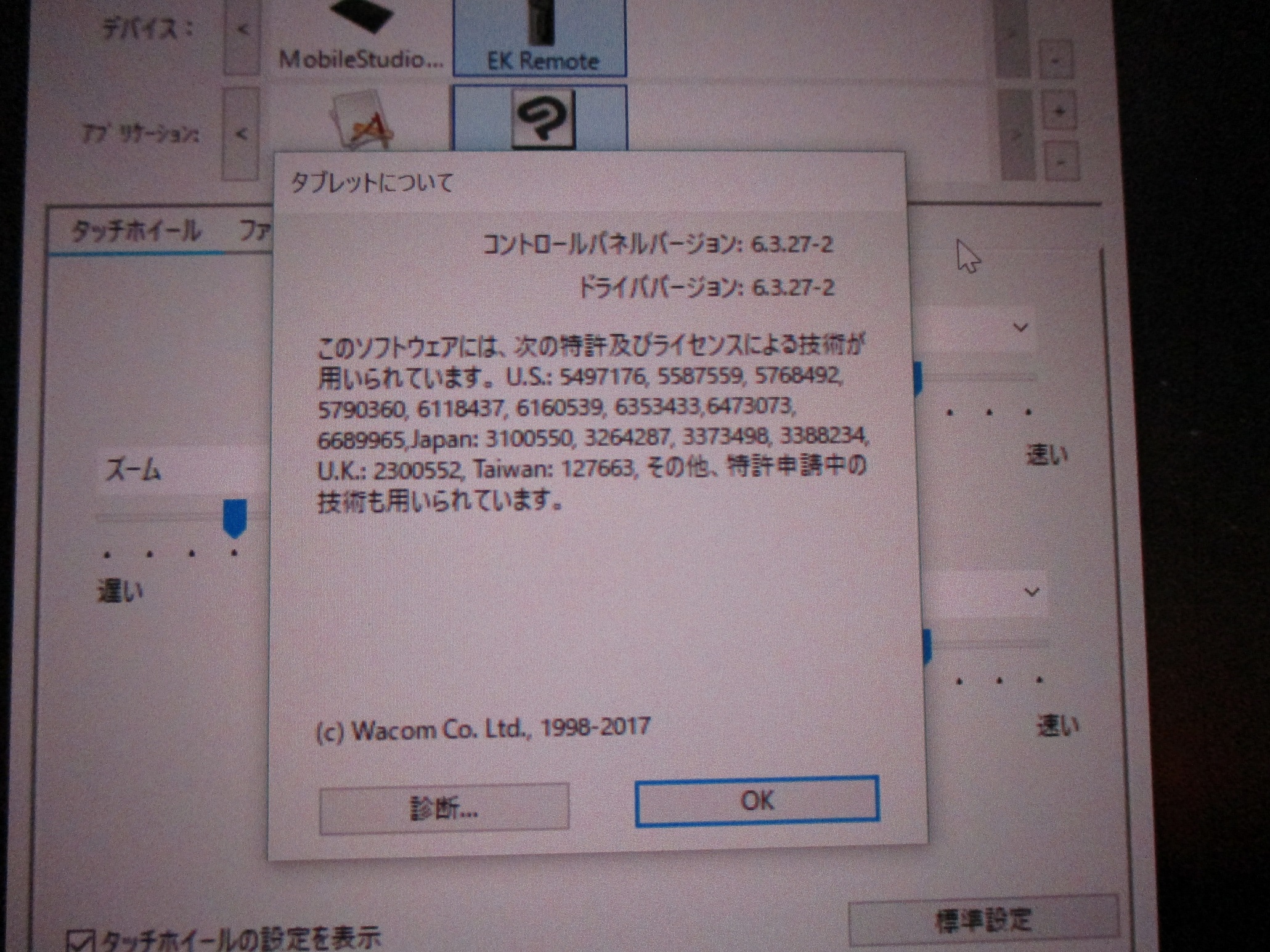 また、問題が発生した際に、この[ワコムタブレットのプロパティ]