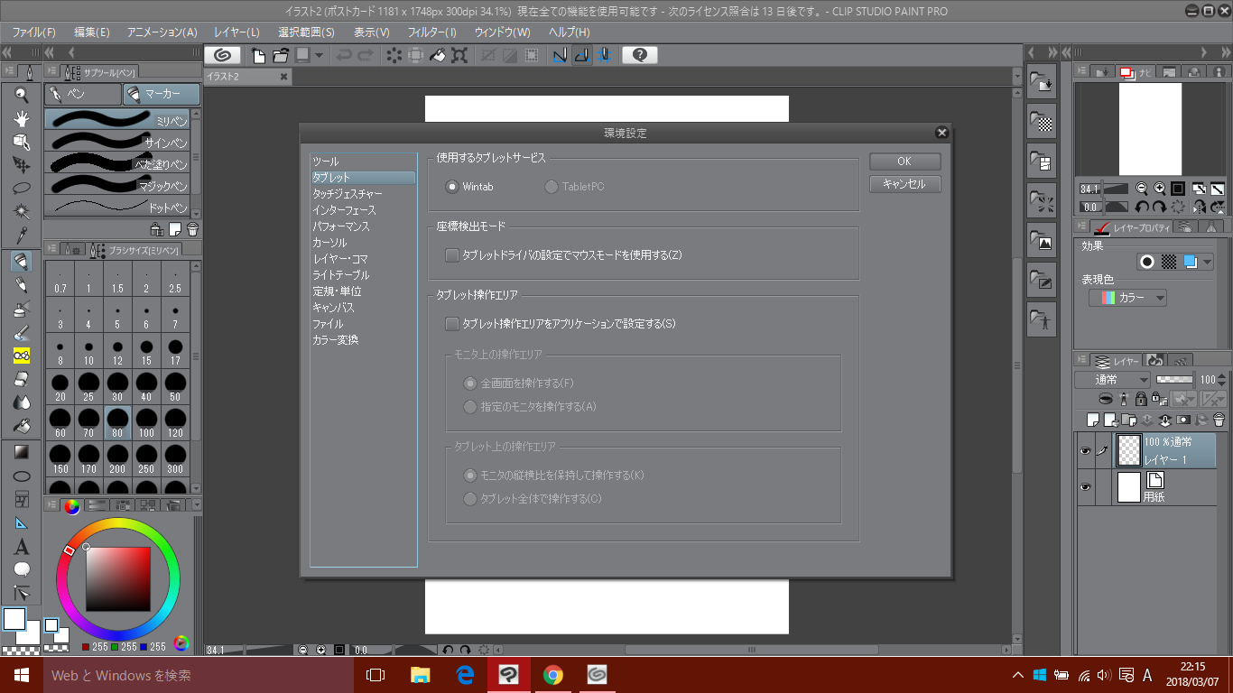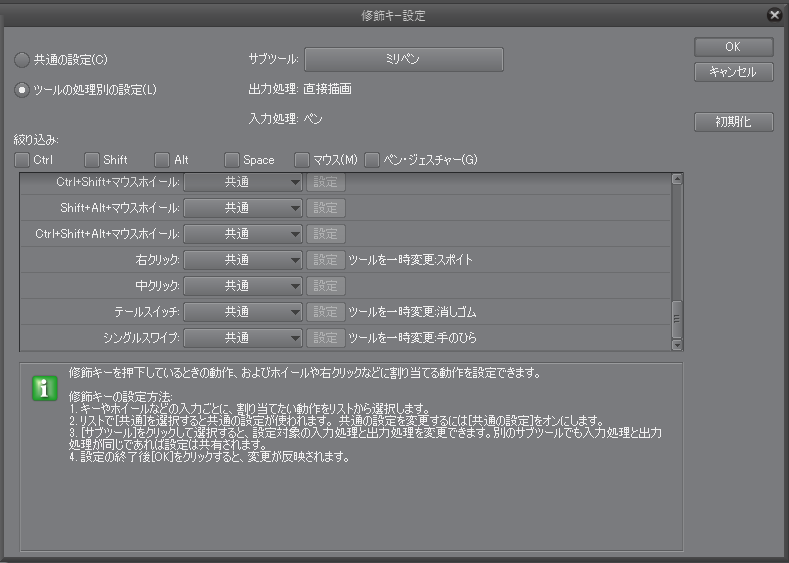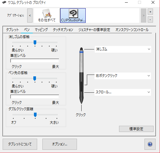 ・ご使用のペンタブレットのメーカー名、型番、ドライババージョンを