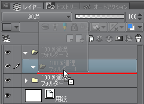 新規レイヤーフォルダーを作成し、ラスターレイヤーを1つ入れた状態に