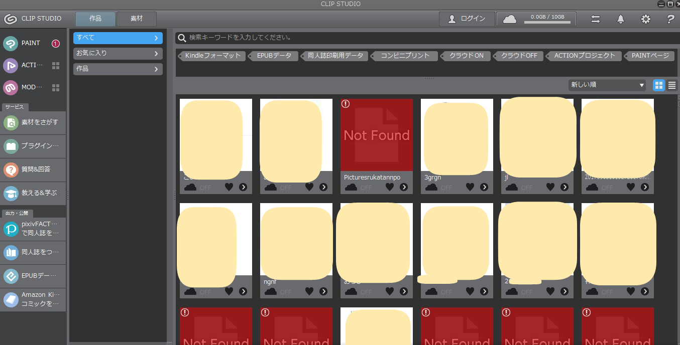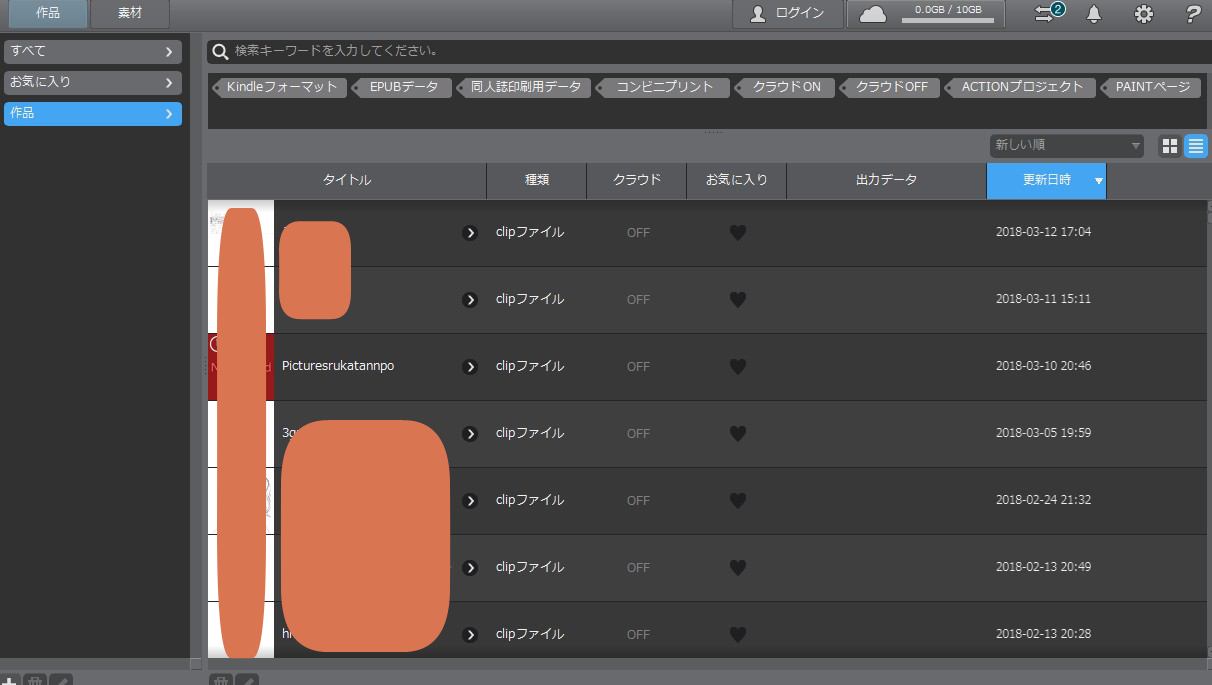 一覧については、CLIP STUDIO PAINTで作業後に保存された場所を参照した上で表示