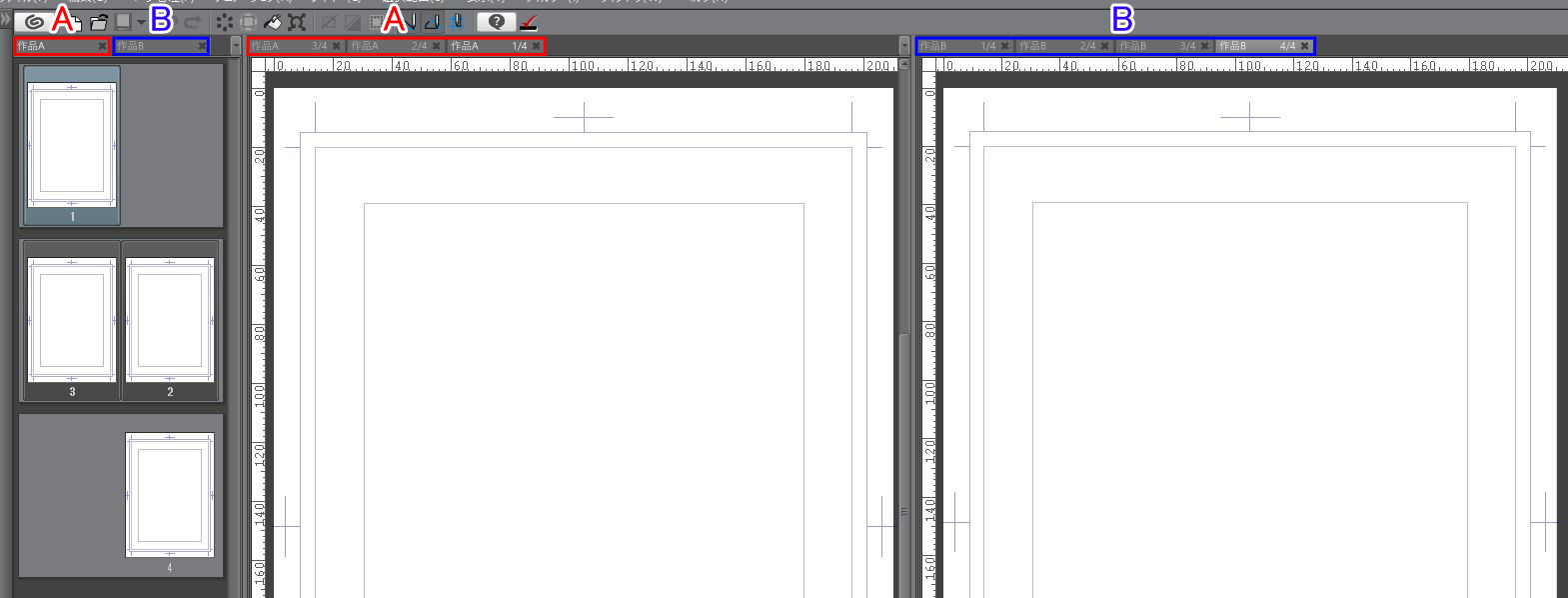 新たにページを開いた場合、必ず属する作品側のエリアでタブが開かれます。