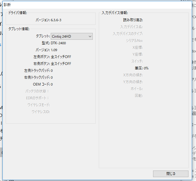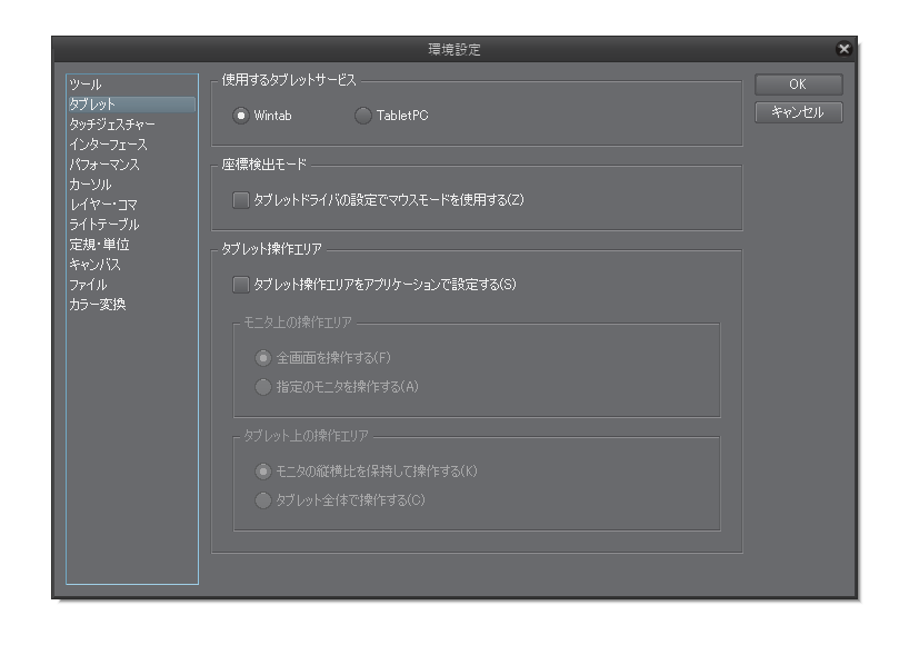 *[ファイル]メニュー→[環境設定]→[タブレット]を選択いただき、表示される