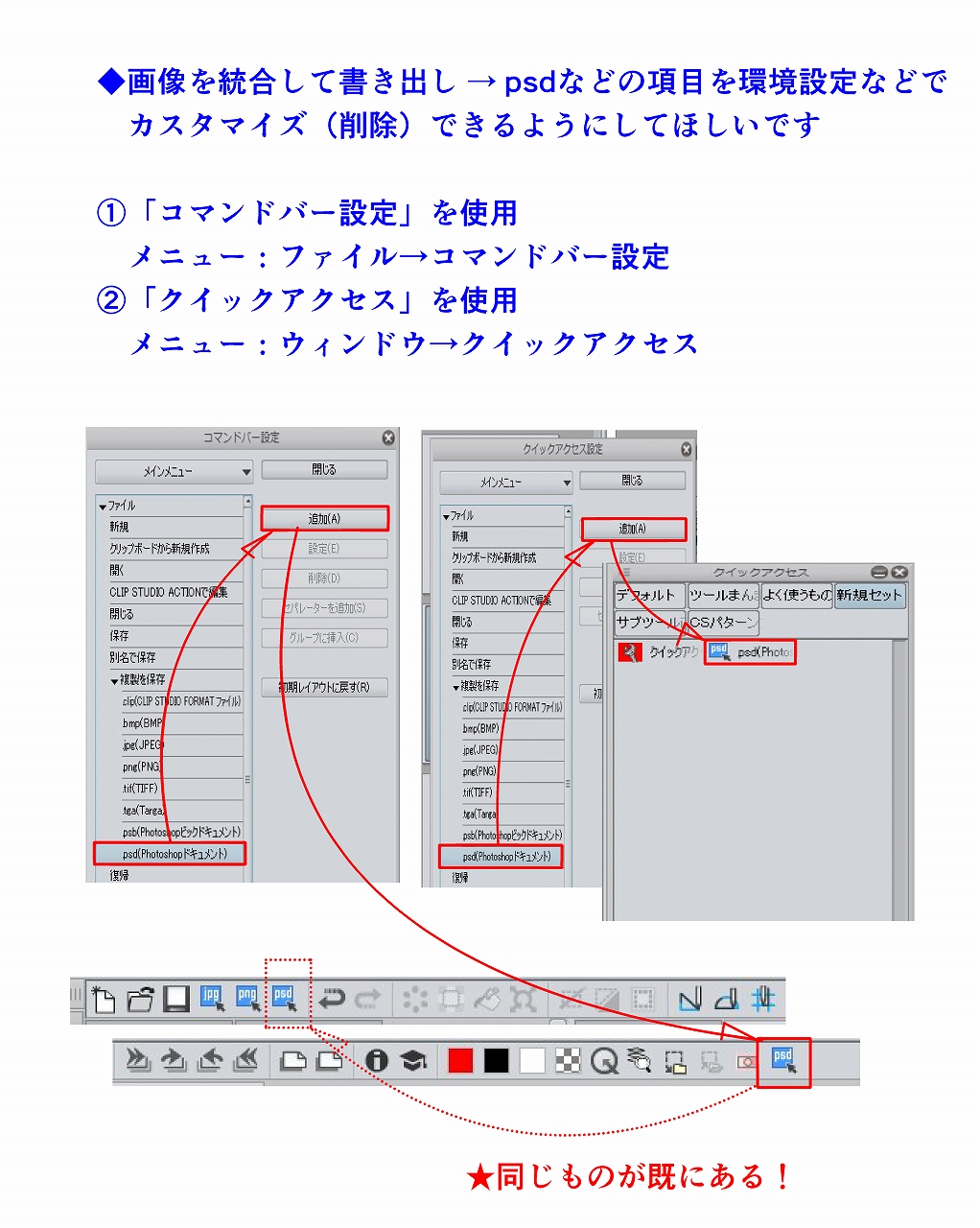 画像を統合して書き出し → psdなどの項目を環境設定などでカスタマイズ(削除)できるようにしてほしいです |