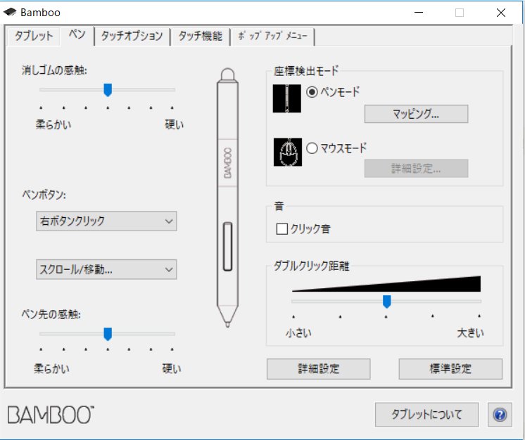 先日パソコンを新調し、板タブも問題なくスクロールできるのですが、同じく新しく購入したクリスタプロを起動したらペンのボタンを押しながらスクロールすればスケッチ画面が動かせたはずがうごかせなくなってしまいました。また右のウィンドウ全ての場所でカーソルを合わせた時どこを押しても反応しません。 またパソコンの再起動、タッチ機能はオフに、クリスタの再起動、全て行ってみましたが解決しませんでした。 ペンタブはWacomのbambooでモデルはCTH-470です。 ------------------------------------------------------------ ■バージョン: ※Windowsは、[ヘルプ]メニュー → [バージョン情報]で確認できます。 ※MacOSXは、[CLIP STUDIO PAINT]メニュー → [バージョン情報]で確認できます。 ※iPadは、[CLIP STUDIO PAINT]アイコン → [バージョン情報]で確認できます。 ■グレード DEBUT( ) PRO( 〇 ) EX( ) ■OS Windows XP( ) Windows Vista( ) Windows 7 ( ) Windows 8( ) Windows 8.1( ) Windows 10( 〇) MacOS X 10.5( ) MacOS X 10.6( ) MacOS X 10.7( ) MacOS X 10.8( ) MacOS X 10.9( ) MacOS X 10.10( ) MacOS X 10.11( ) mac OS 10.12( ) mac OS 10.13( ) iOS 11( ) その他( ) ------------------------------------------------------------ |