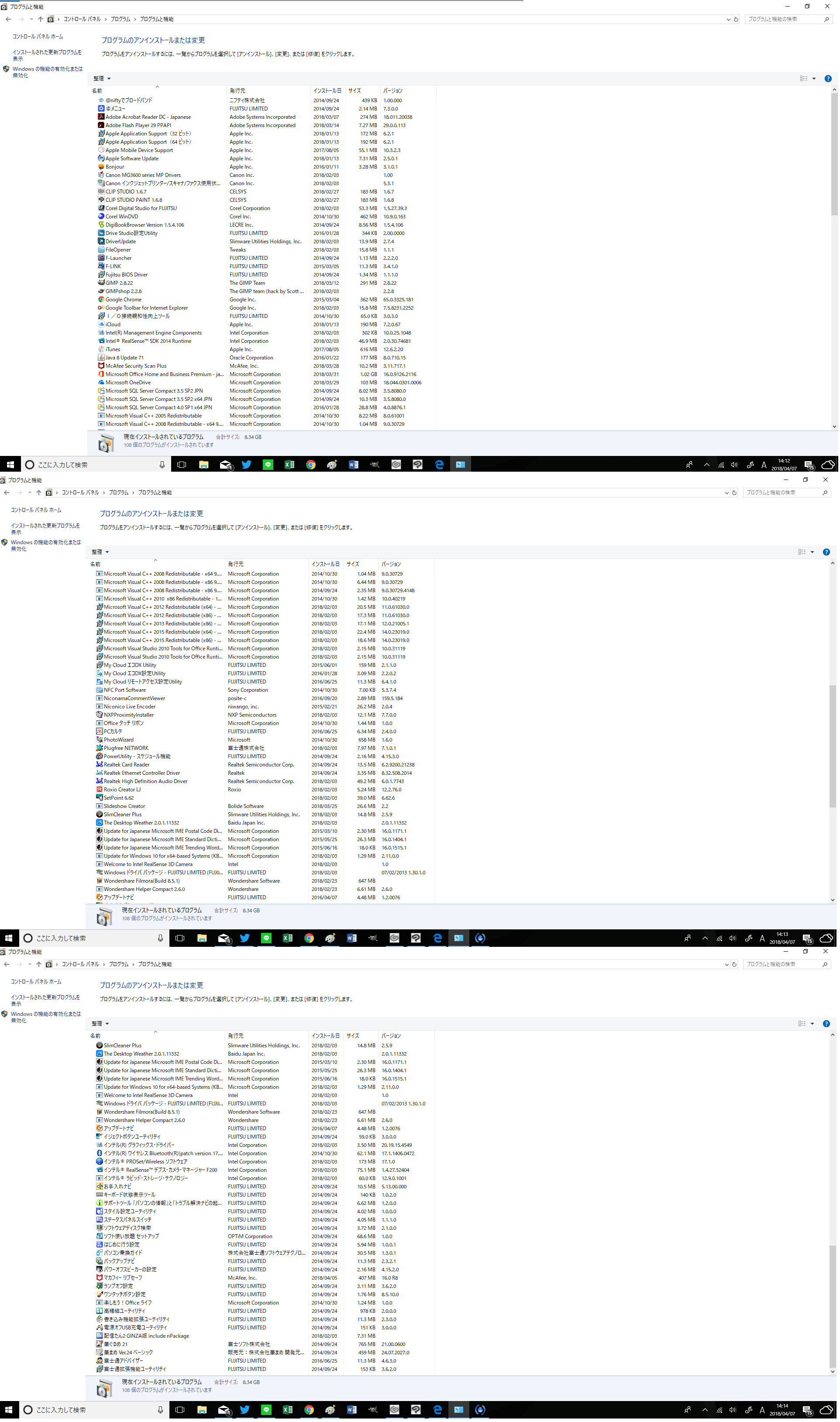 (プログラムと機能)]を選択して表示される画面のすべての項目が