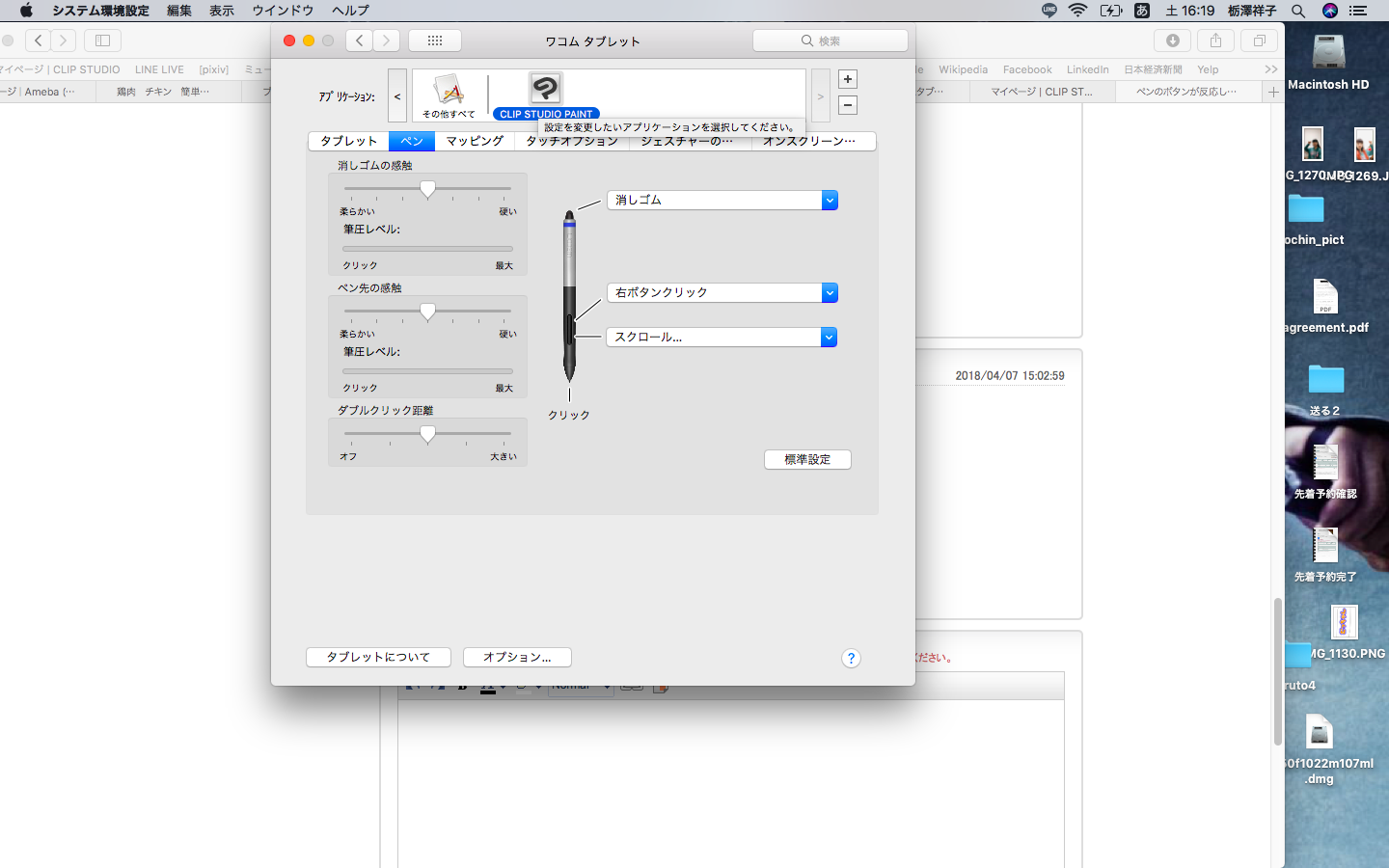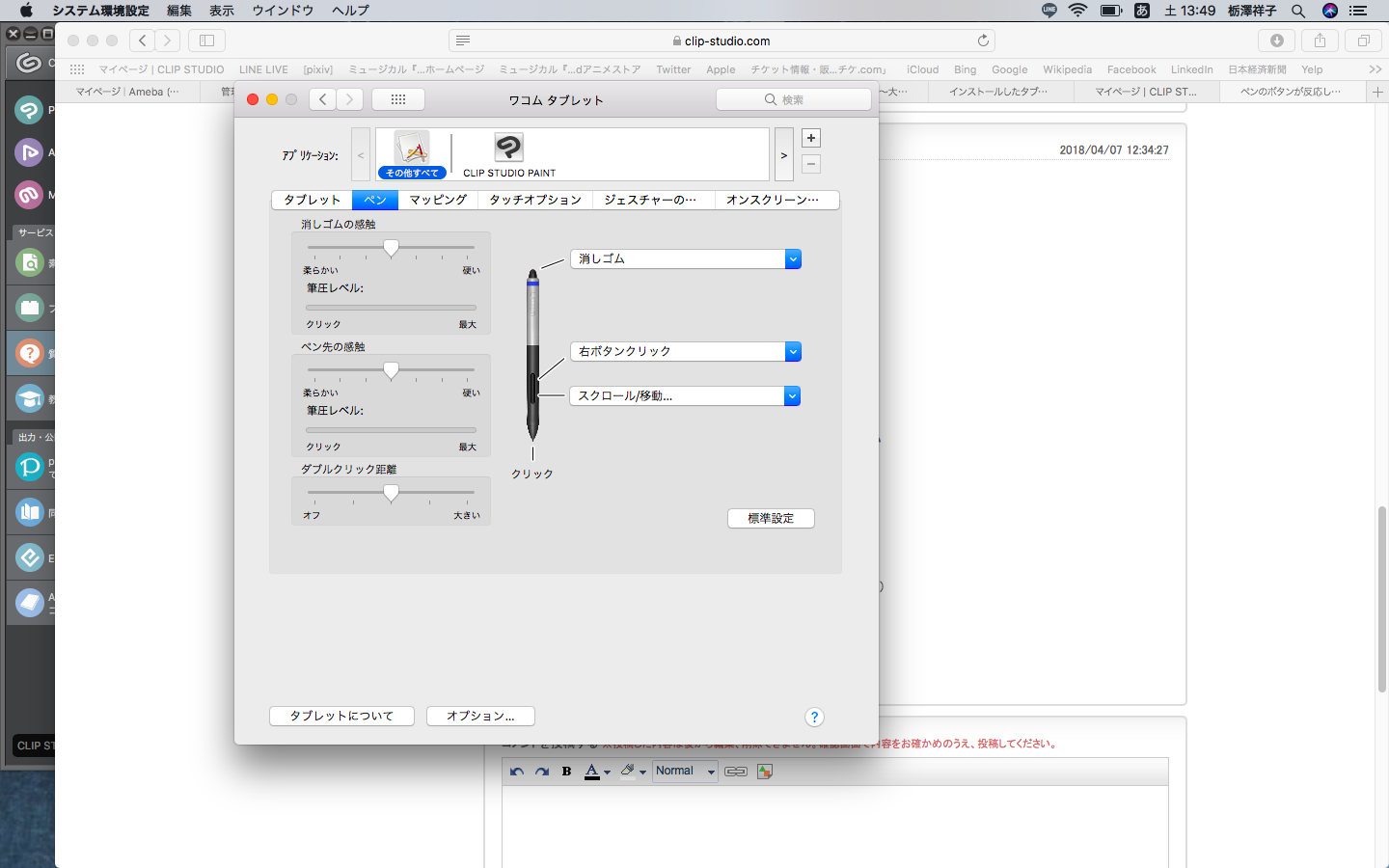 ペンについているボタンを押した時にCLIP STUDIO PAINT上で、