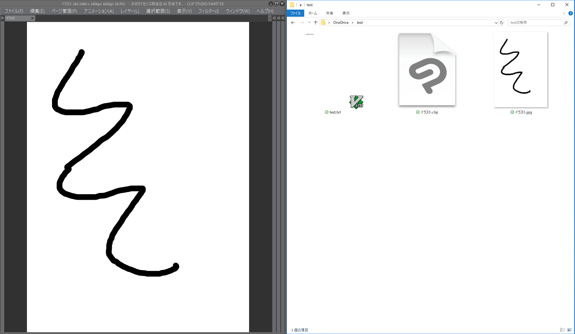 ・CLIP STUDIO PAINTを起動し、新規キャンバスを作成して、適当に描画し、