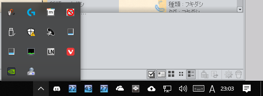 重ねての確認となり恐縮ですが、タスクバー右側のタスクトレイを開き、表示