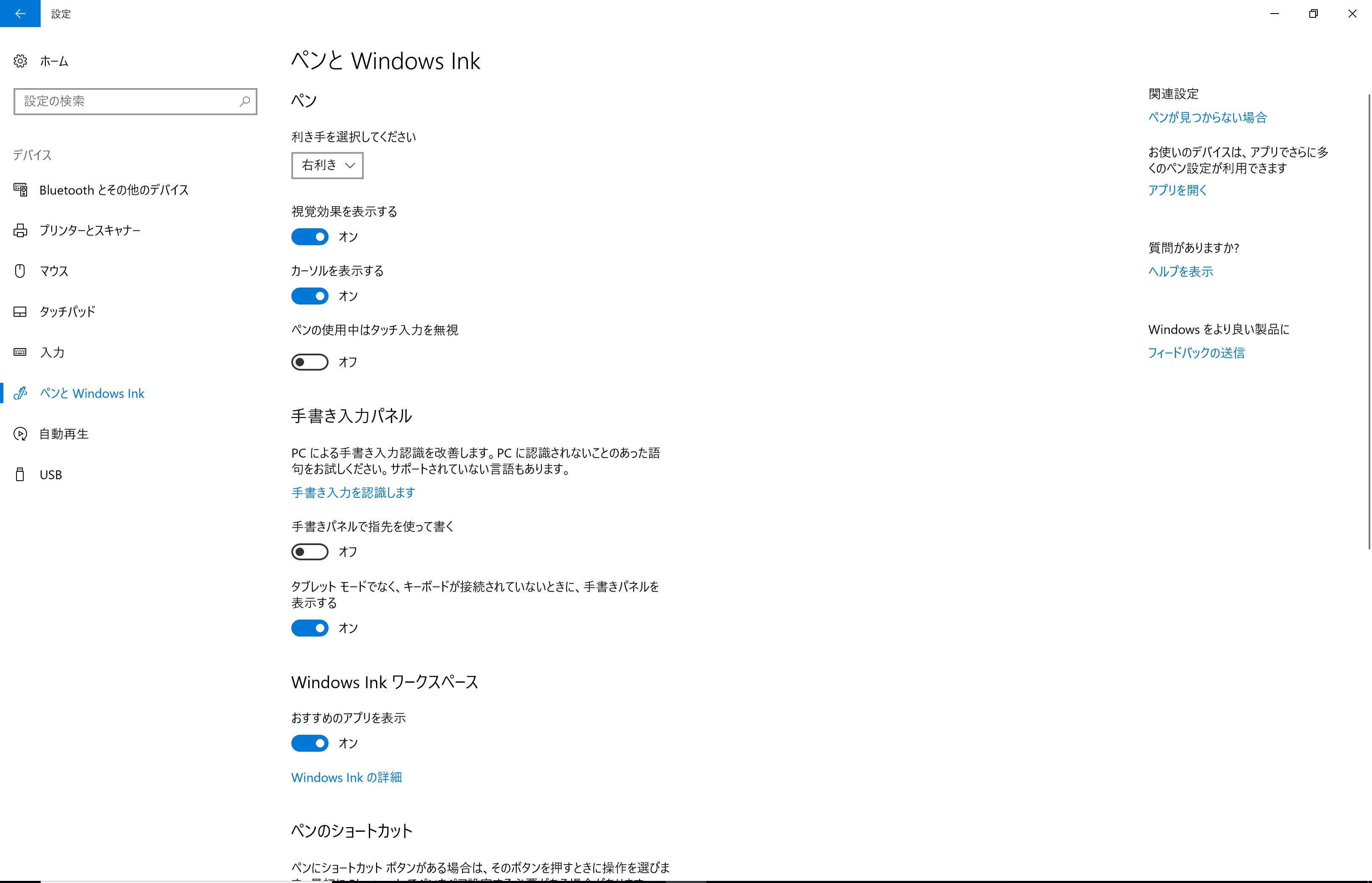 [ペンとWindows Ink]を選択し、表示される画面全体のスクリーンショットを撮影