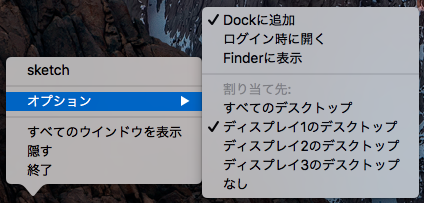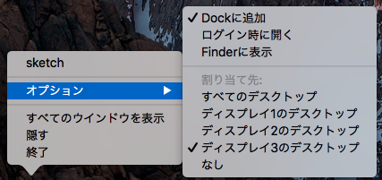 いつも活用させて頂いています。 ・iMac(ディスプレイ1) ・外部ディスプレイ(ディスプレイ2) ・液晶タブレット(ディスプレイ3) という環境で作業しているのですが、液晶タブレット(ディスプレイ3)に クリスタを表示していても、ファイルを開いたり新規作成したりすると ディスプレイ1に表示されてしまい、困っています。 ![]() 対処法として、上記画像のようにDockオプションの「割り当て先」を 一度「デスクトップ3」以外に設定し、 ![]() その後、上記画像のように「デスクトップ3」に再度割り当て直すと正常な挙動になりました。 ただ、最初からデスクトップ3に割り当てた状態ではデスクトップ1に表示されてしまうため 割り当て状態がうまく保持されていないのではないかと思われます。 ファイルの開閉は頻繁に行う作業ですし、ワークスペースの割り当て設定は 問題なく動作しているようですので、ぜひもう一歩だけ踏み込んで調査していただき、 正常に動作するようになることを強く望みます。 ------------------------------------------------------------ ■バージョン: Ver.1.7.1 ■グレード DEBUT( ) PRO( ○ ) EX( ) ■OS Windows XP( ) Windows Vista( ) Windows 7 ( ) Windows 8( ) Windows 8.1( ) Windows 10( ) MacOS X 10.5( ) MacOS X 10.6( ) MacOS X 10.7( ) MacOS X 10.8( ) MacOS X 10.9( ) MacOS X 10.10( ) MacOS X 10.11( ) mac OS 10.12( ○ ) mac OS 10.13( ) iOS 11( ) その他( ) ------------------------------------------------------------ |