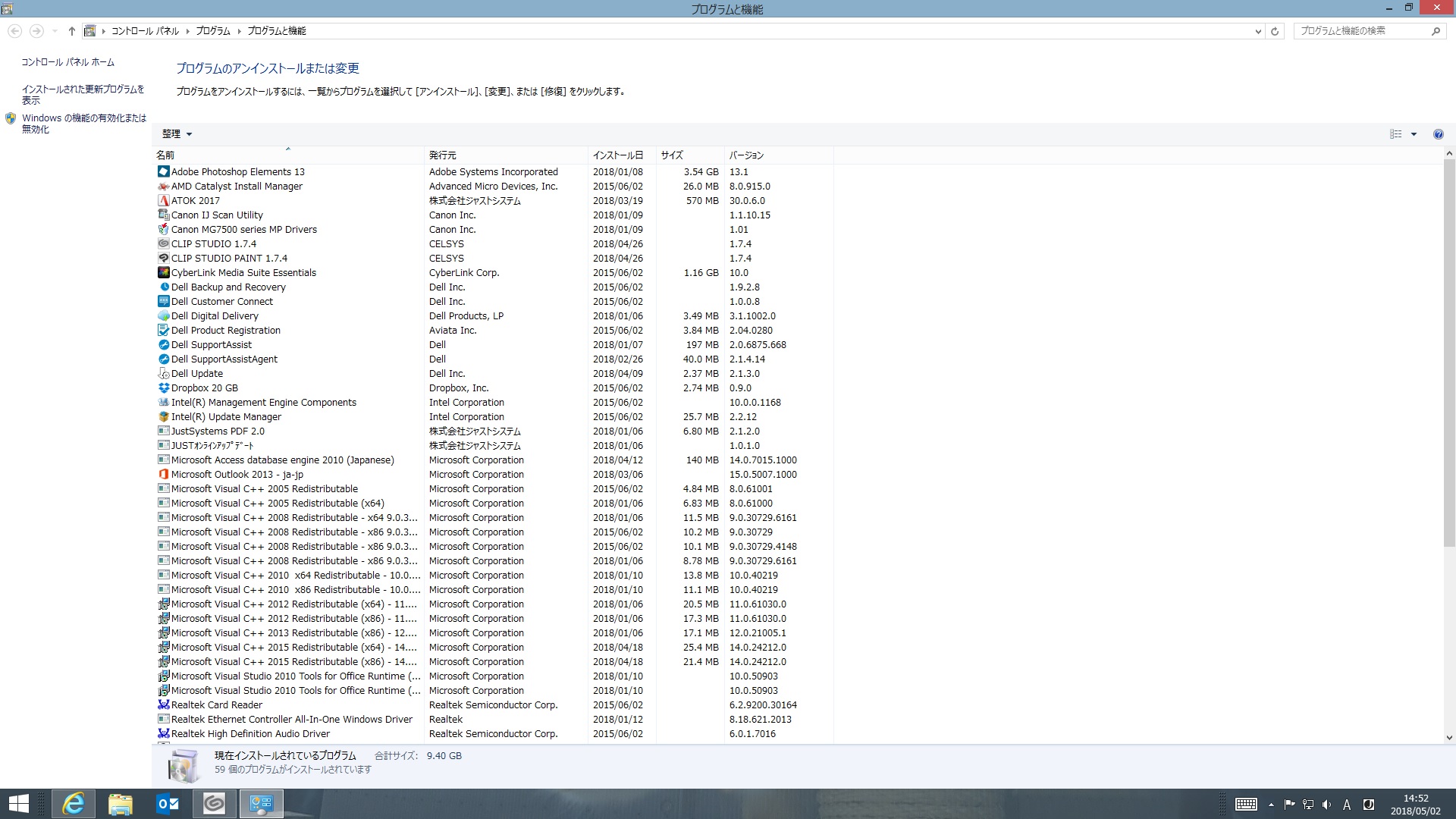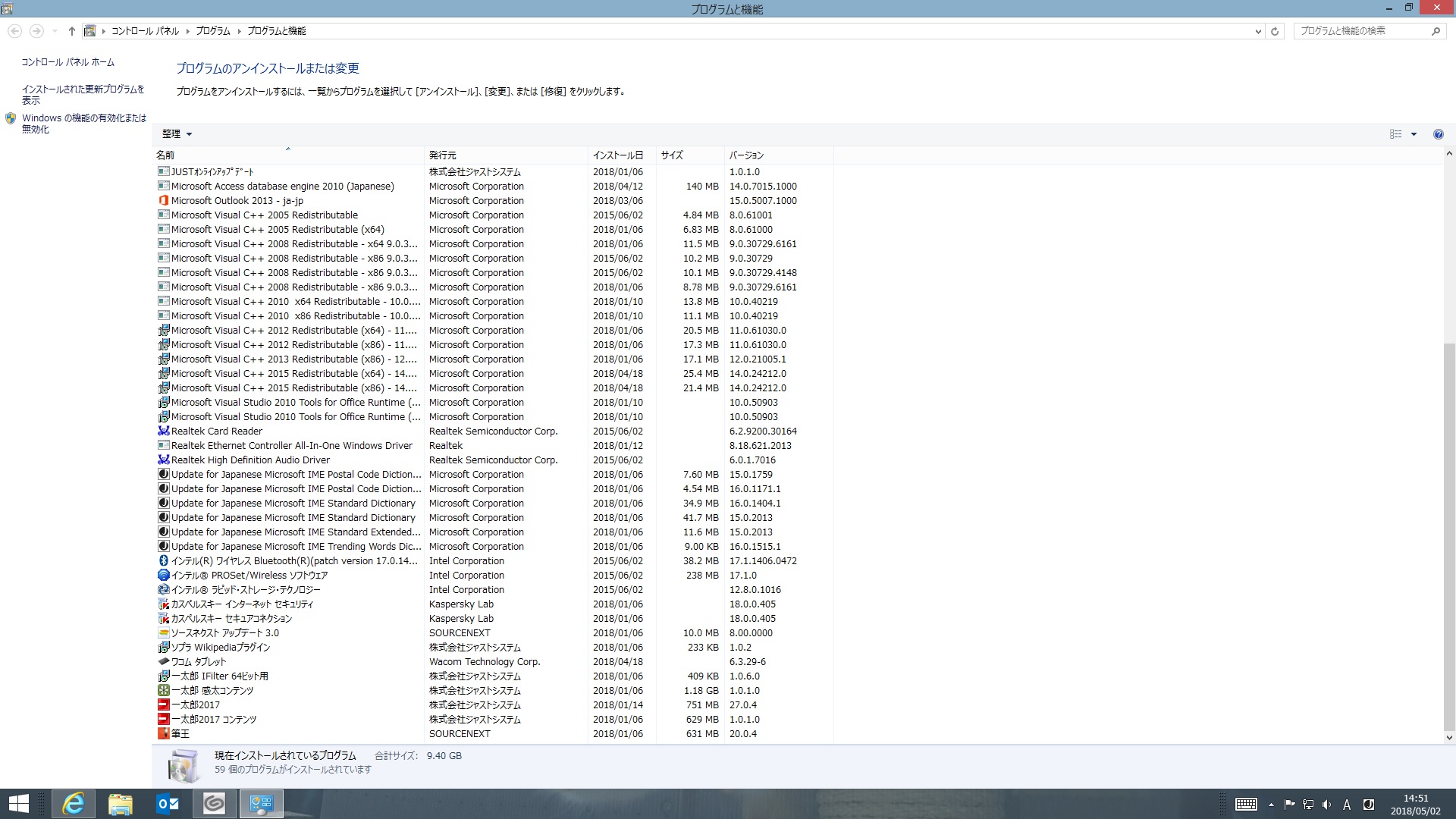 ものから順に並ぶように変更した上で、2018年にインストールされた
