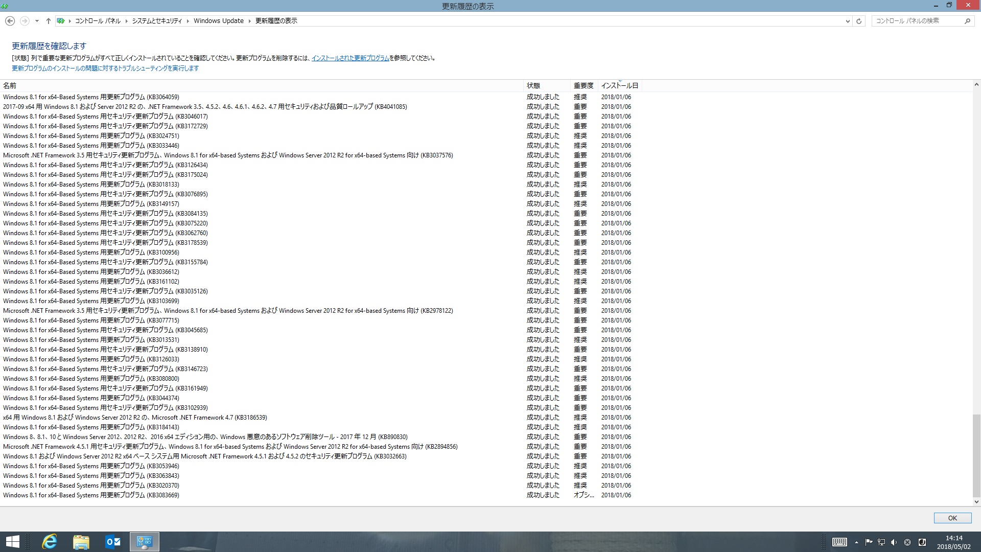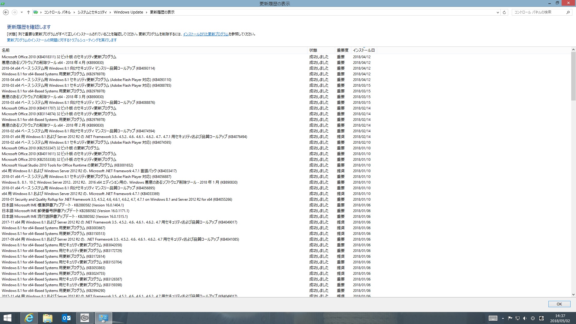 選択して、表示される画面の左側の[更新履歴の表示]を選択し、表示