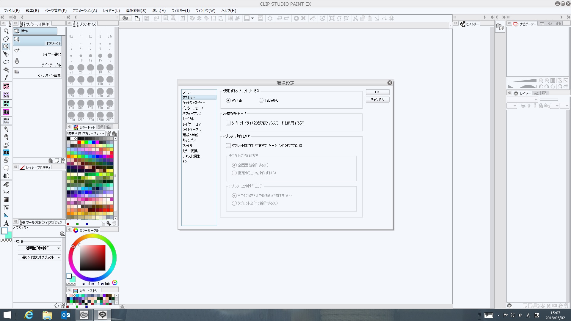 ・ご使用のペンタブレットのメーカー名、型番、ドライババージョンを