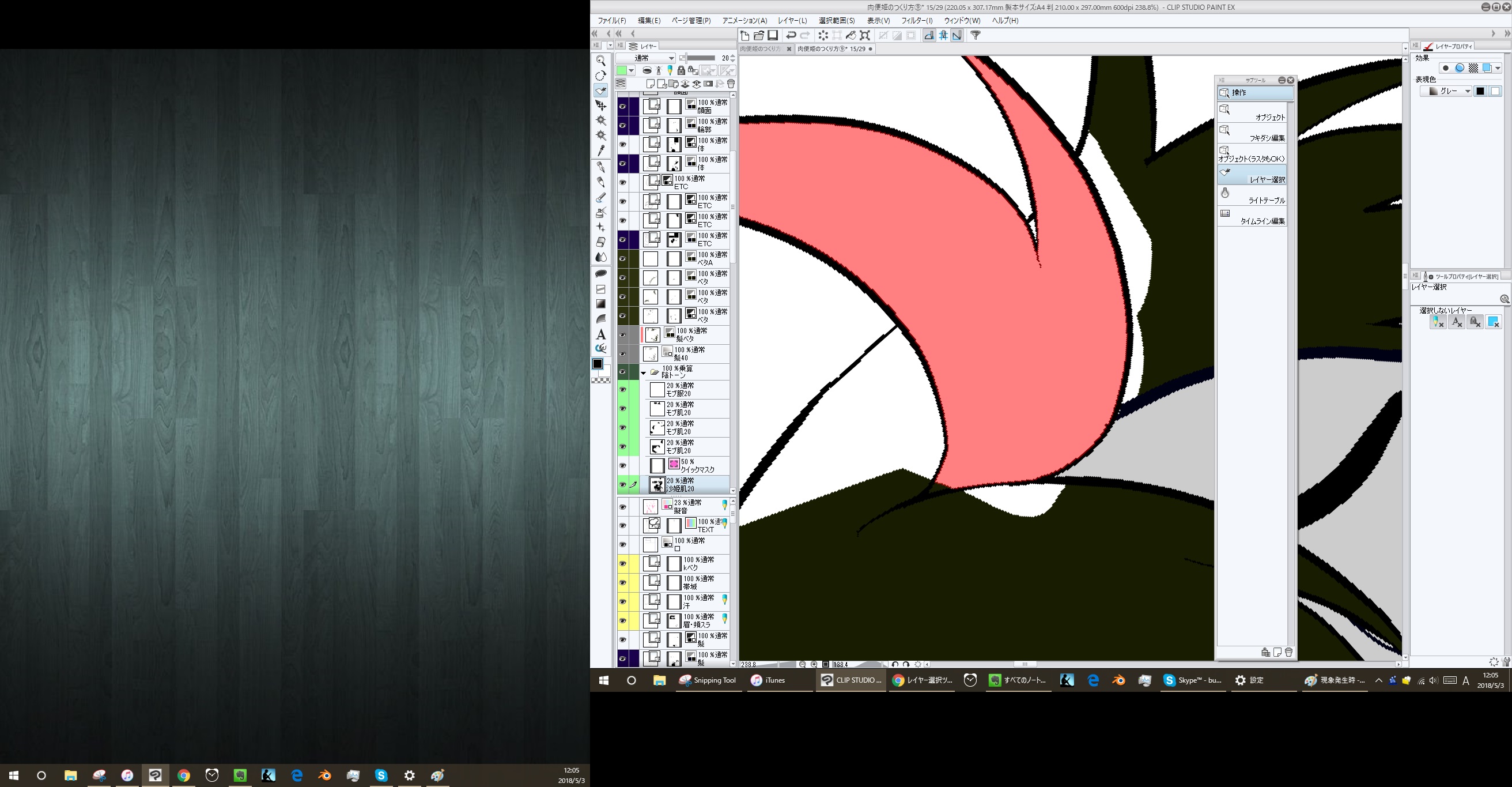 追記1:クイックマスク使用中、解除の入力をしていないのにクイックマスクが解除され、通常の選択範囲の状態に戻ってしまうことが時々起こります。一定時間放置した後にクリップスタジオ上でカーソルを動かすことで、引き金を引いたように起こります。また、連続した作業中にもふいに起こることがあります。関係あるのかわかりませんが、今回のスクショ作業中にも起きたので報告しておきます。