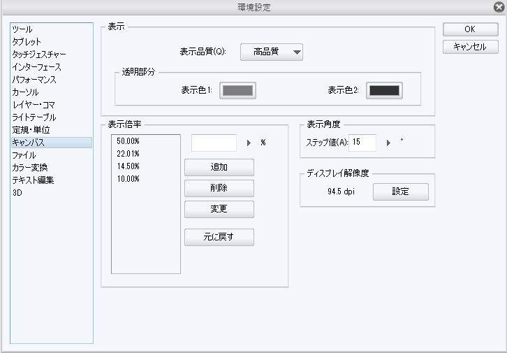 ・CLIP STUDIO PAINTを起動し、[ファイル]メニュー→[環境設定]を選択して、
