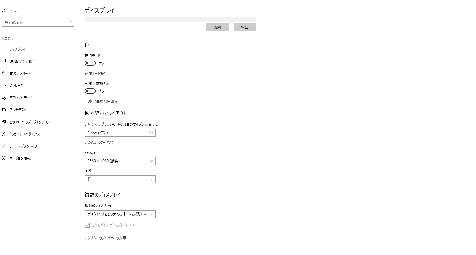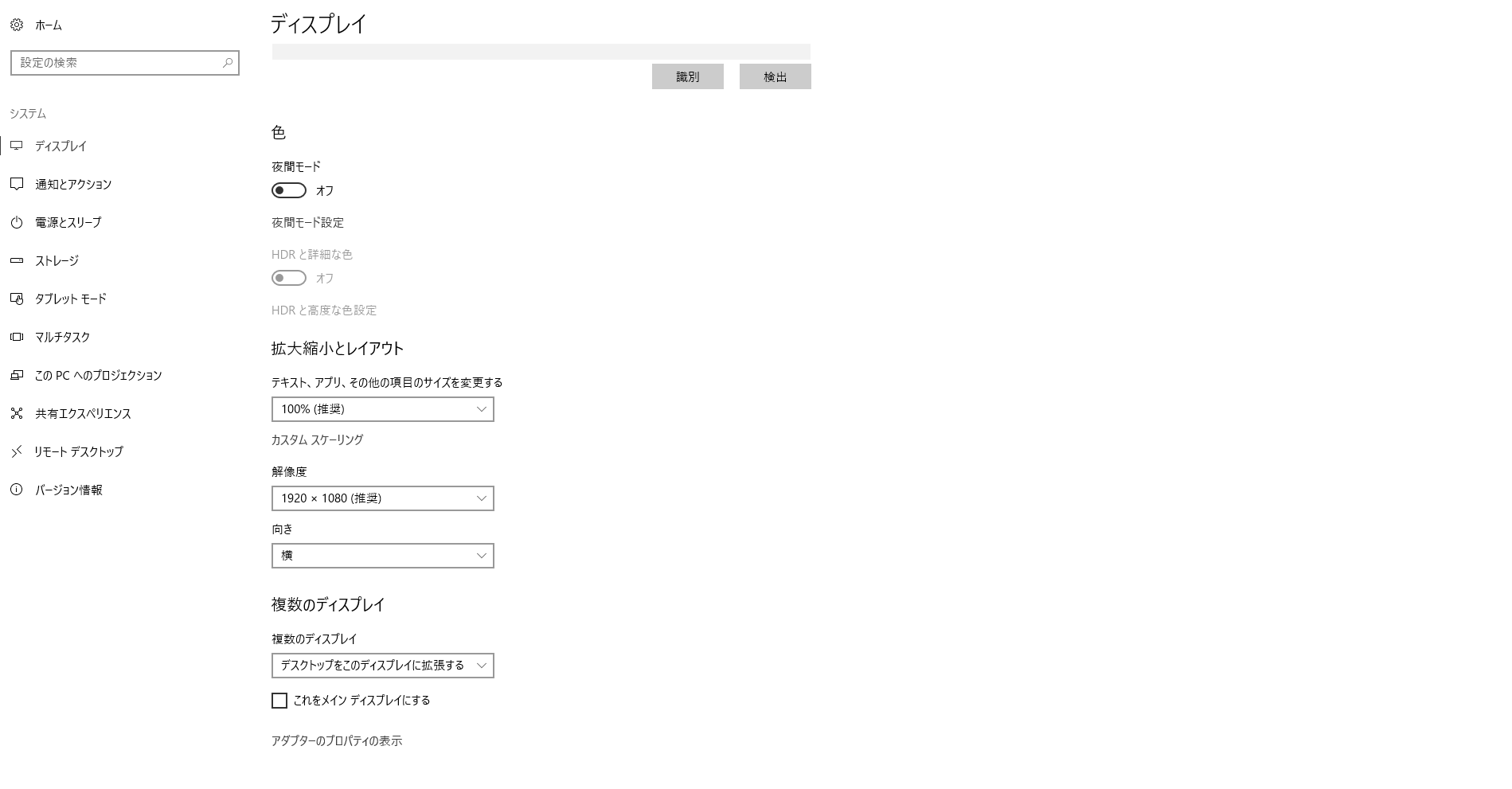 ・[Windowsスタート]→[設定]→[システム]を選択し、表示される画面の