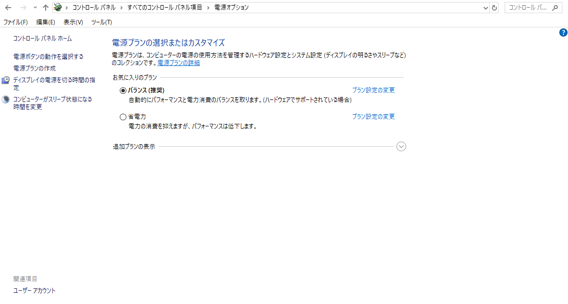 [電源オプション]を選択して表示される画面のスクリーンショットを