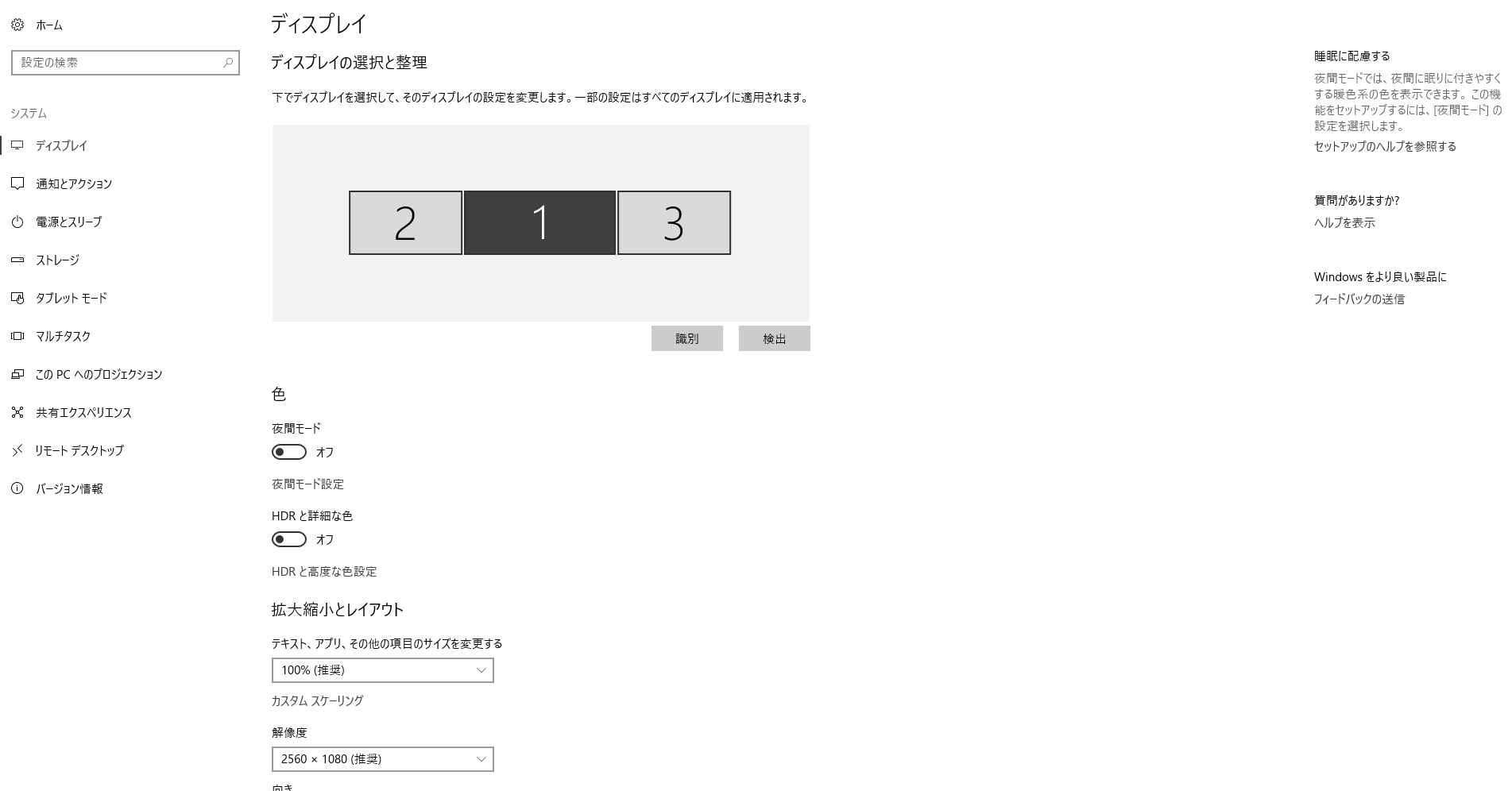 「1」「2」という表示をクリックするとモニタごとの内容が表示