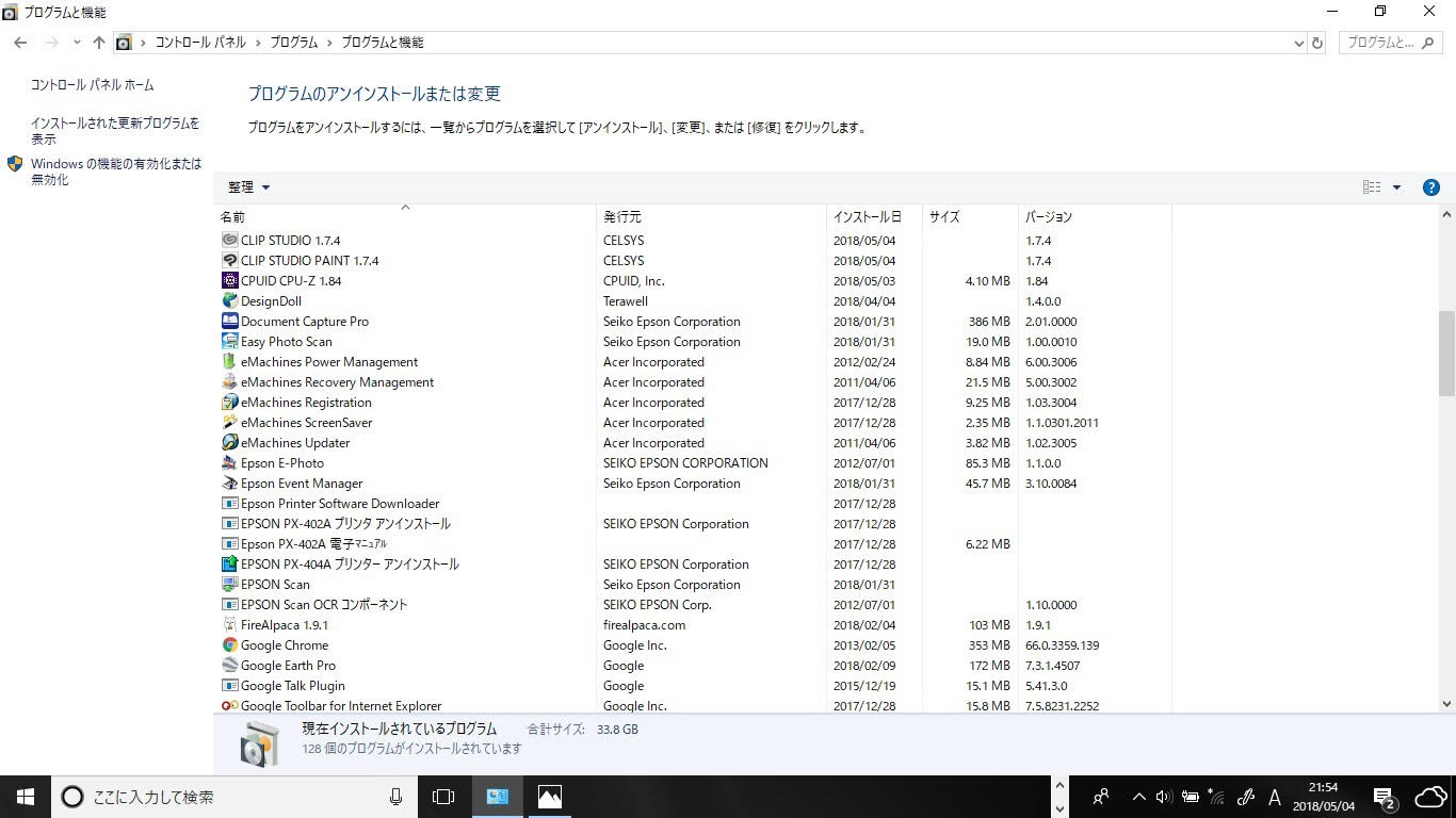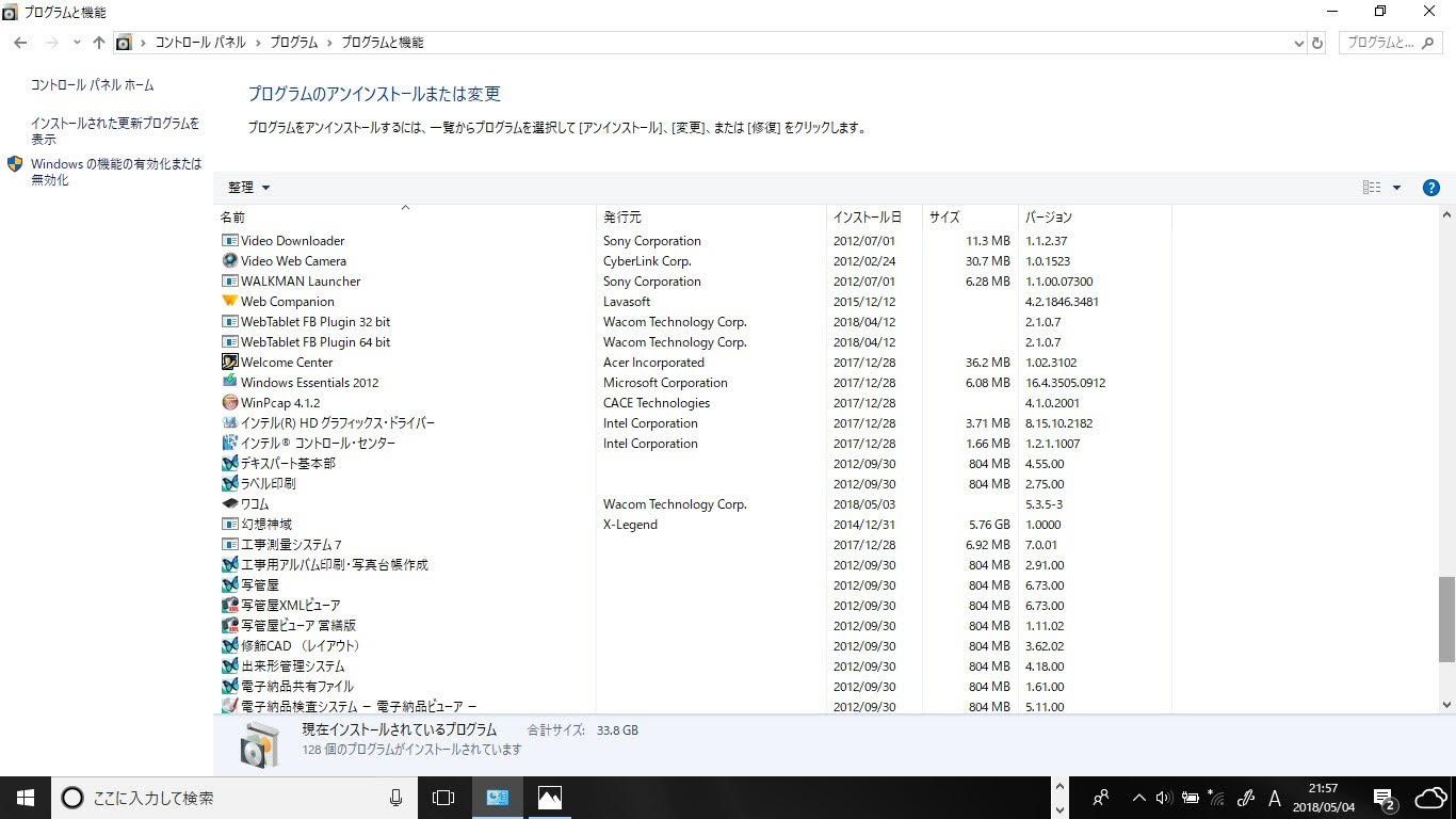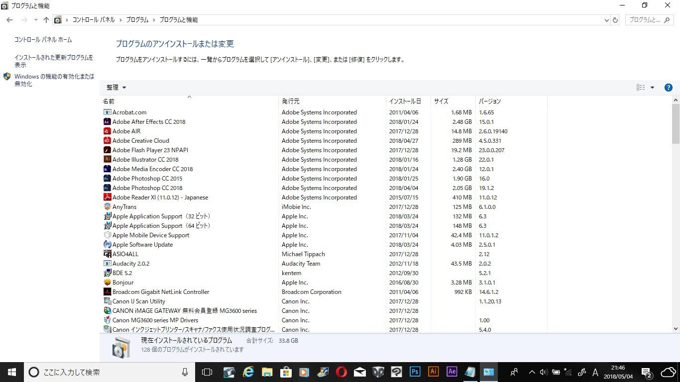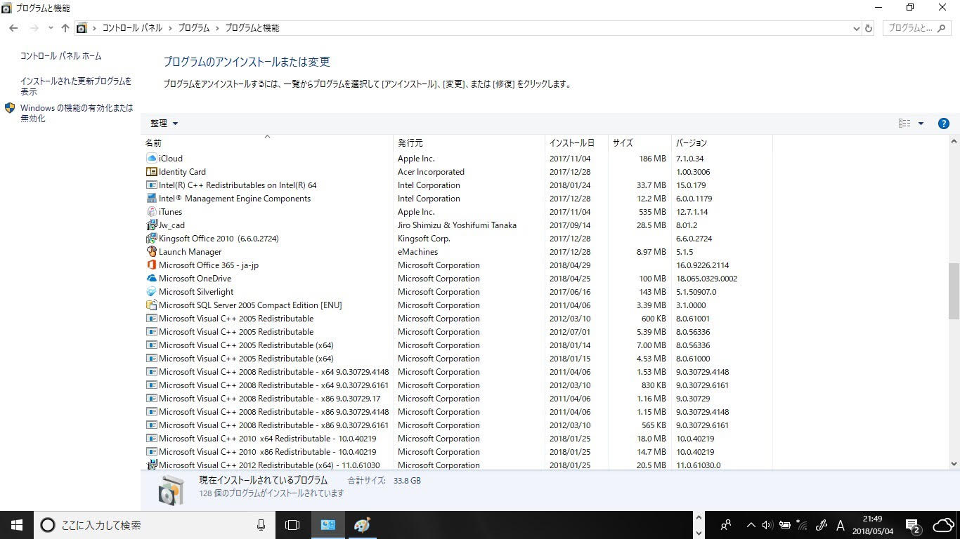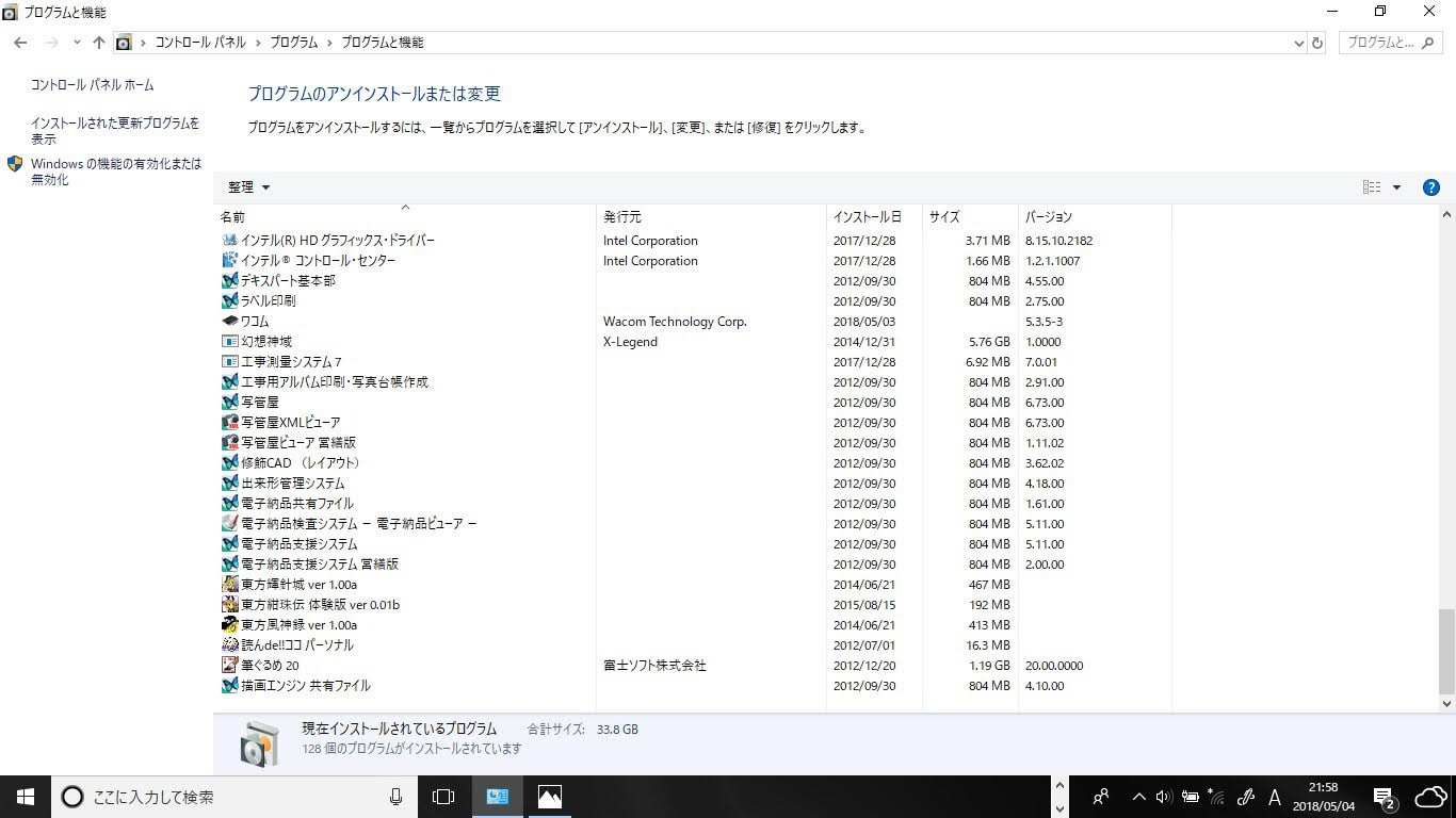(プログラムと機能)]を選択して表示される画面のすべての項目が
