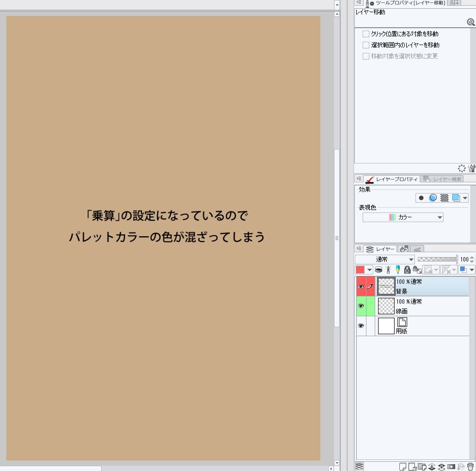 「パレットカラーをキャンバスにも表示」で乗算ではなく不透明も選択できるように |
