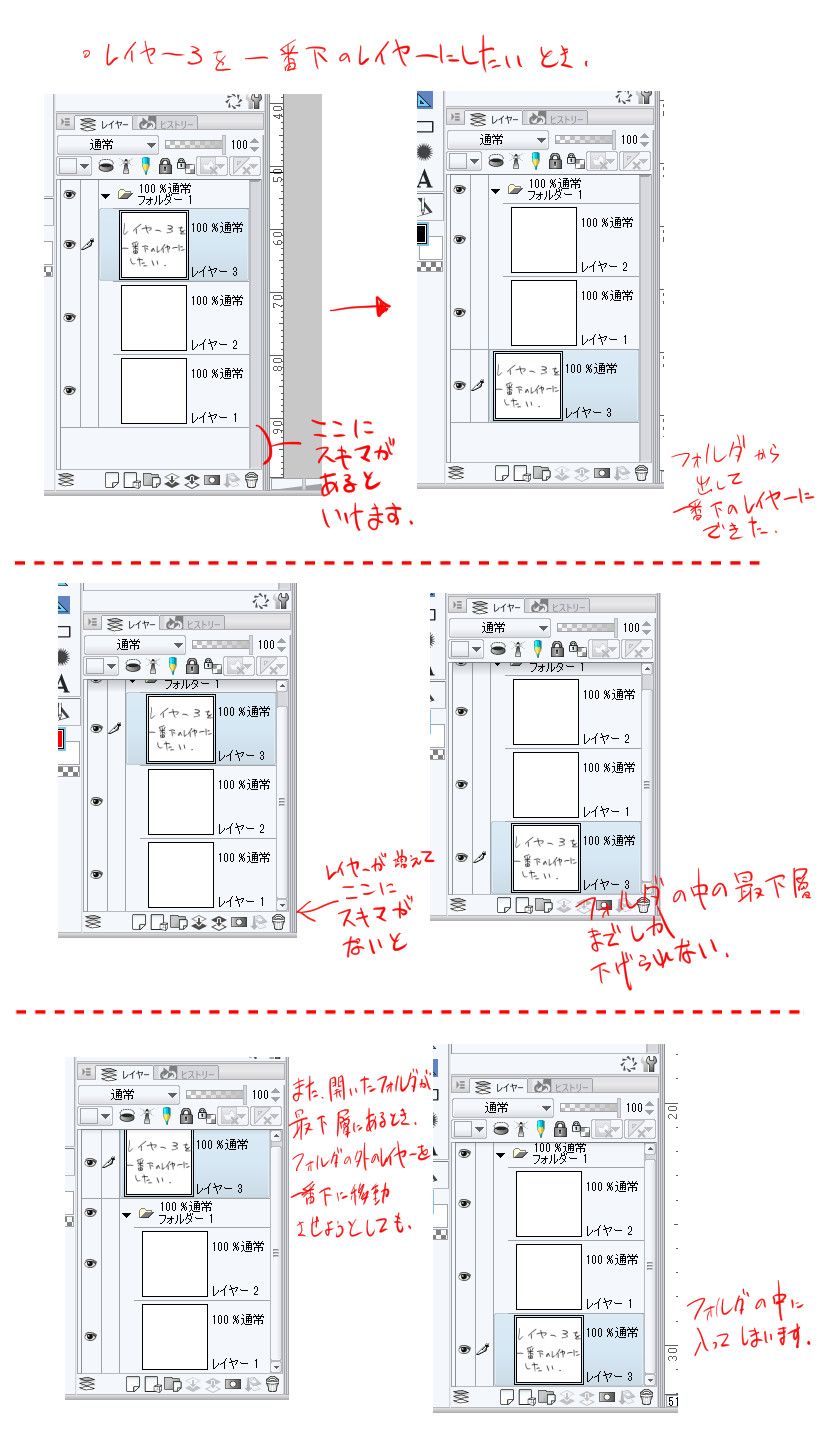 一番下のフォルダから中のレイヤーを下に取り出せない仕様 |