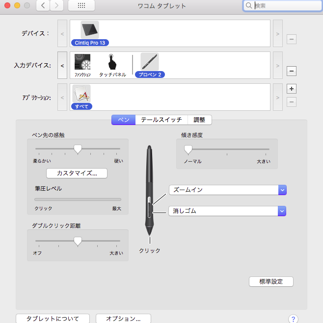 また、その場合ペンタブレットのスイッチやボタンの設定画面の