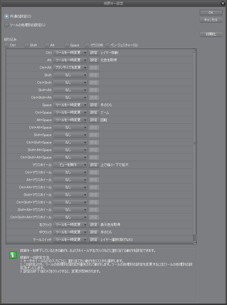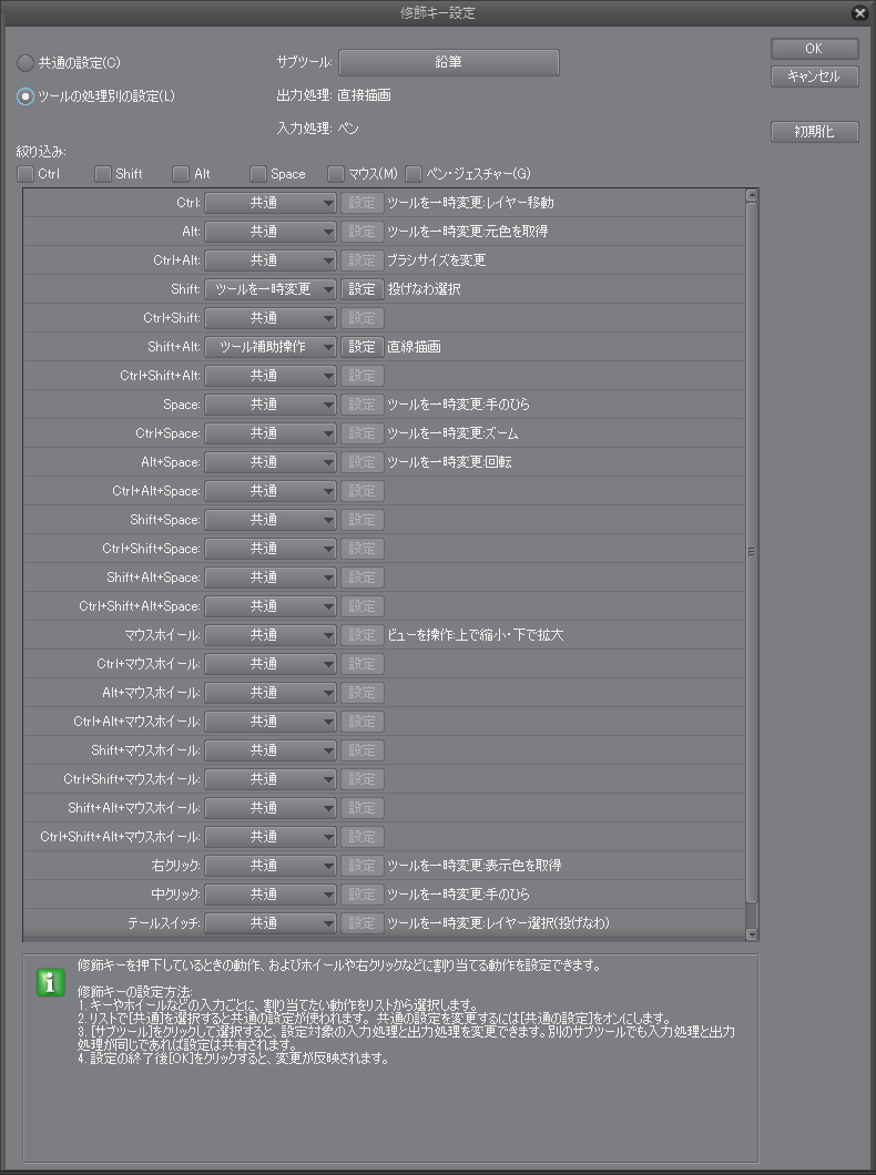右クリックや中クリックなどの、クリック系に割り当てたツールは