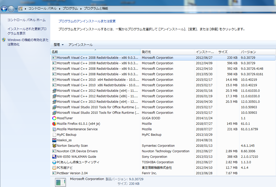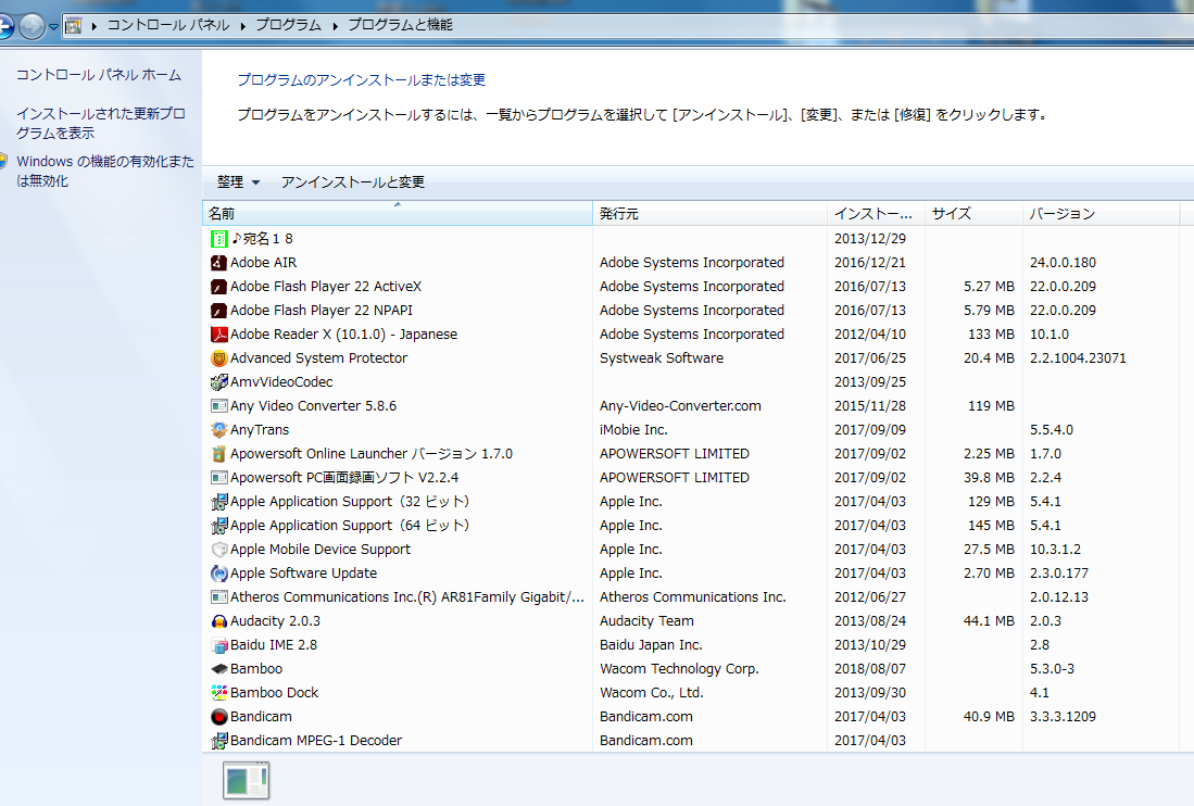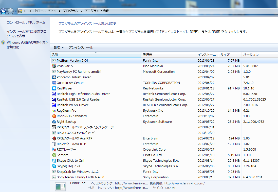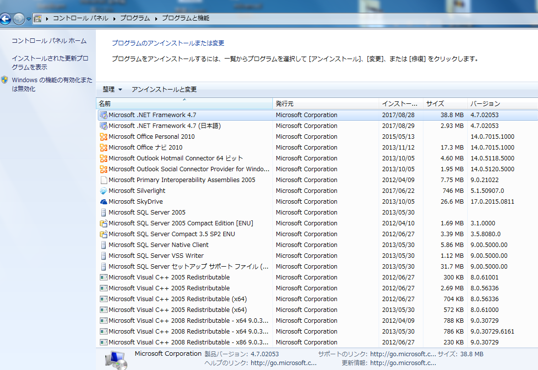 [プログラムのアンインストール(プログラムと機能)]を選択して表示される