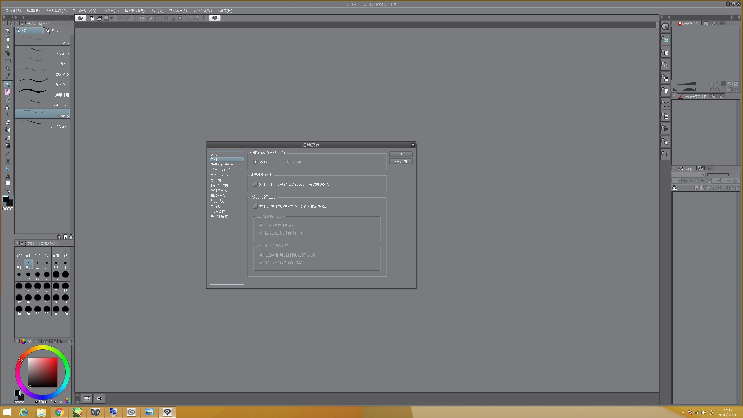 ・CLIP STUDIO PAINTを起動し、[ファイル]メニュー→[環境設定]を選択して、