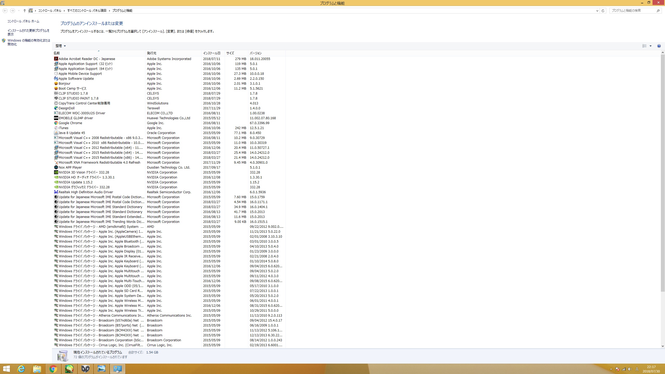 ・画面左下の[Windowsスタート]を右クリックし、[プログラムと機能]を選択して