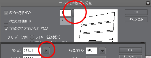 コマ枠を等間隔に分割ウィンドウのボタン |