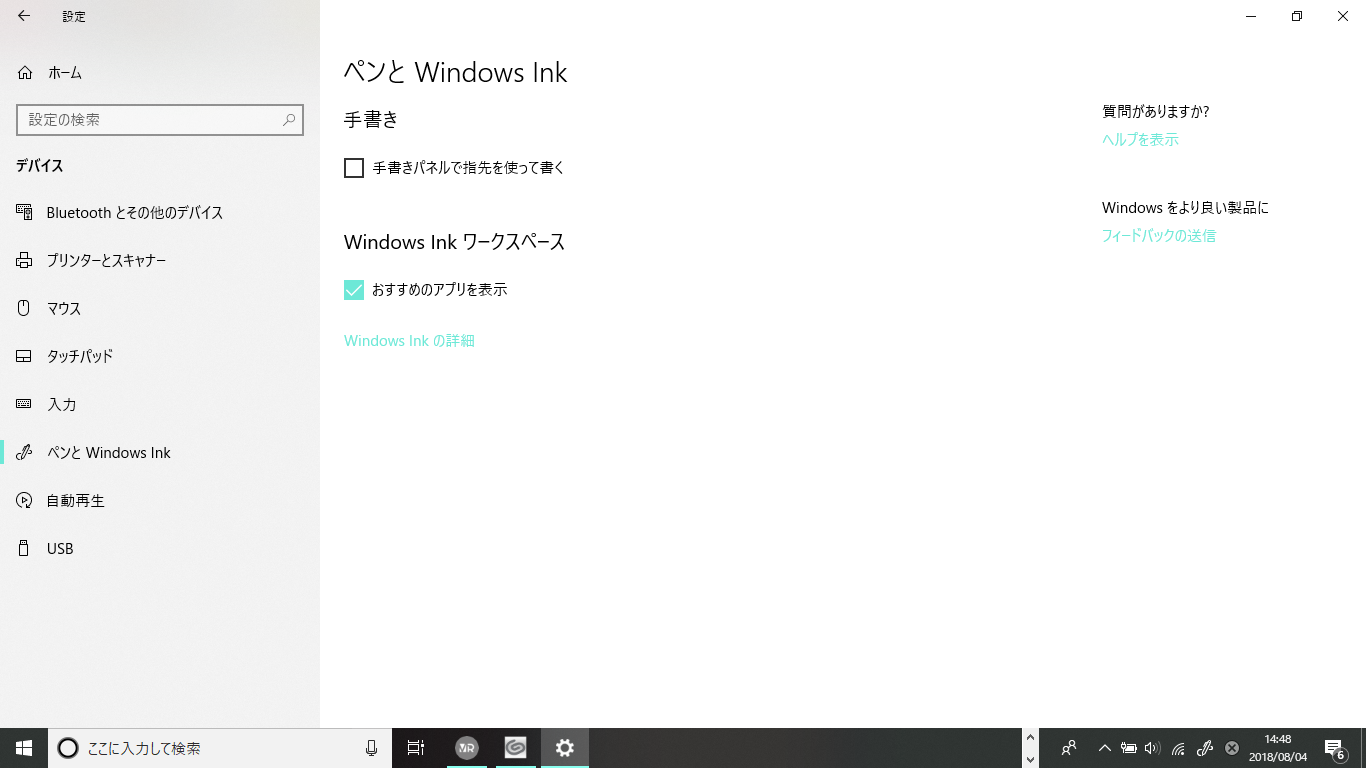 左側で[ペンとWindows Ink]の順に選択すると表示されるページのすべての