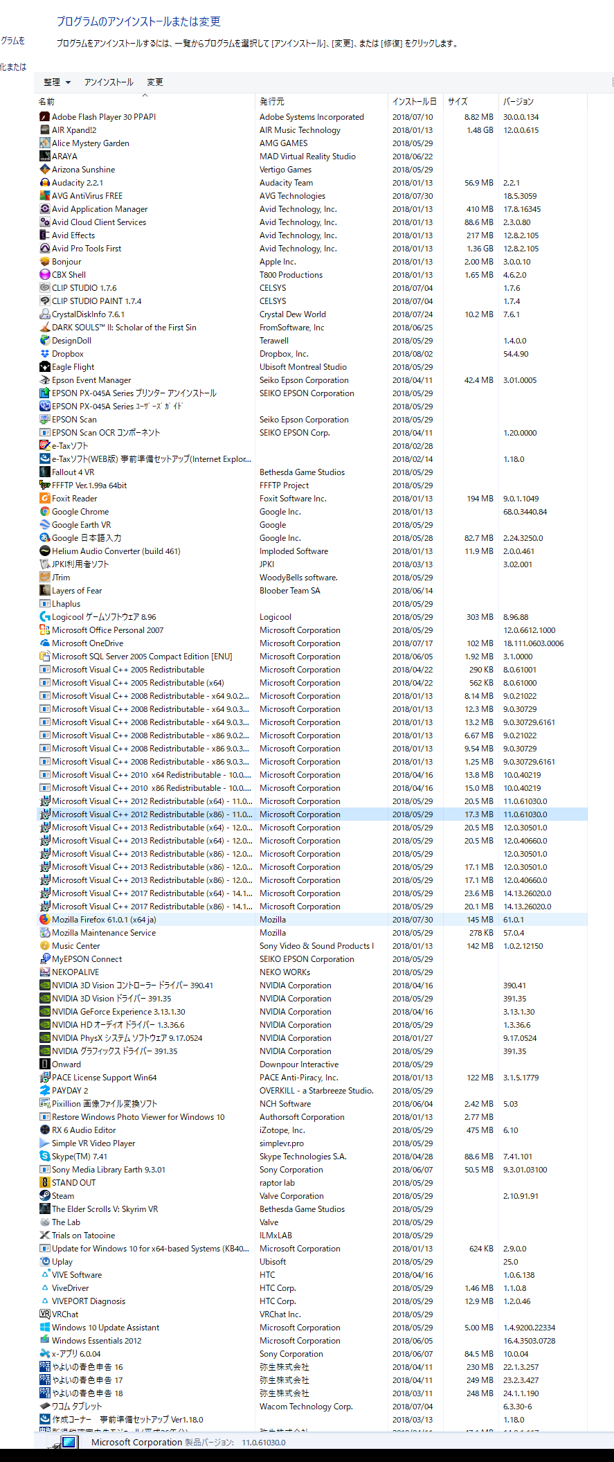 (プログラムと機能)]を選択して表示される画面のすべての項目が