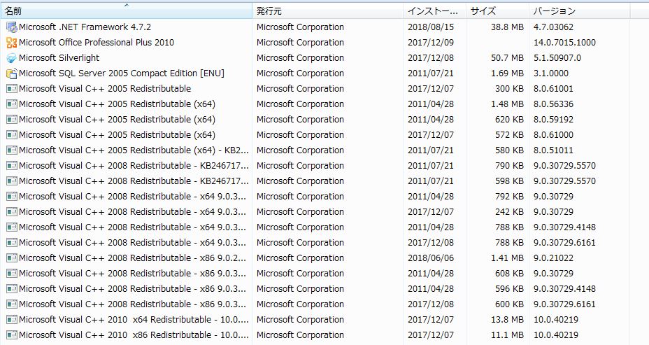 [プログラムのアンインストール(プログラムと機能)]を選択して表示される