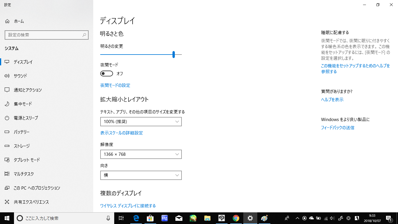 ・[Windowsスタート]→[設定]→[システム]を選択し、表示される画面の