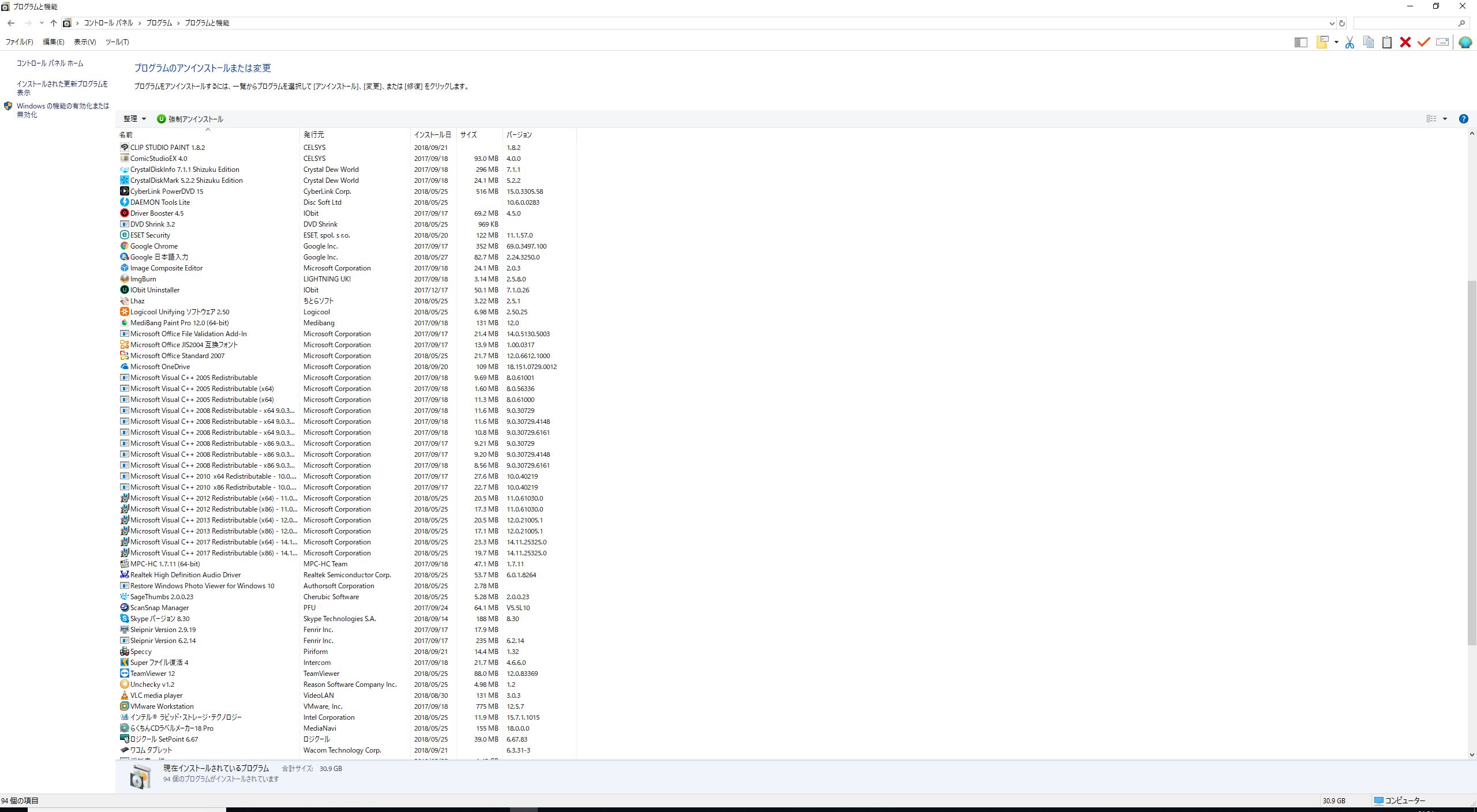 *[コントロールパネル]→[プログラムと機能]を選択していただき、表示
