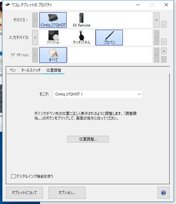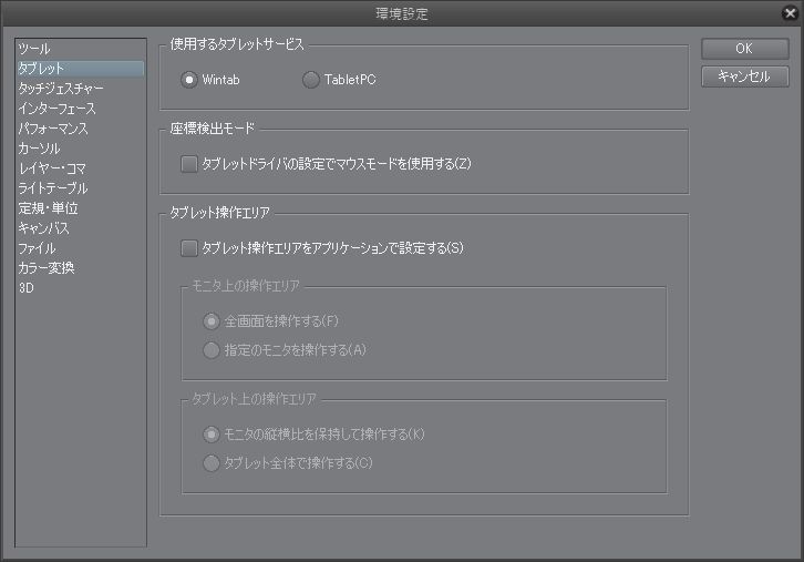 *[ファイル]メニュー→[環境設定]→[タブレット]を選択いただき、表示