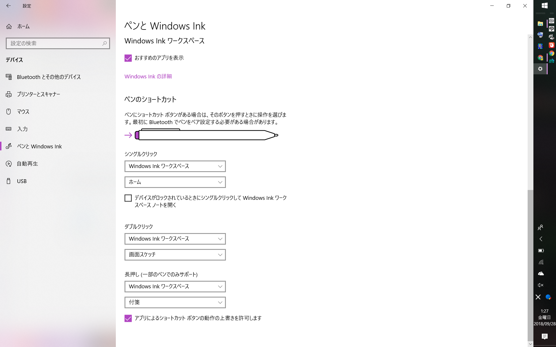 > 左側で[ペンとWindows Ink]の順に選択すると表示されるページのすべての